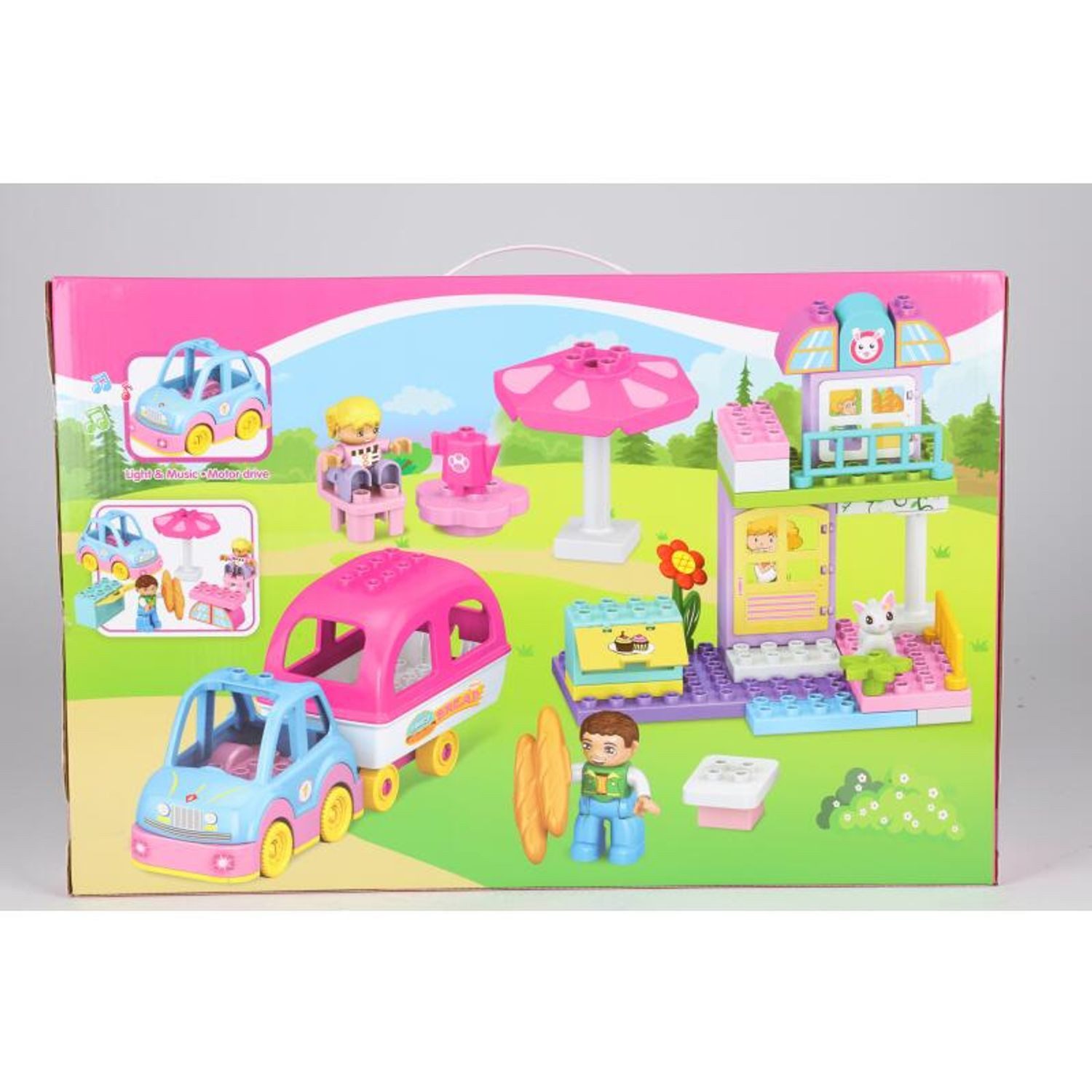 Mit dem 52 teiligen Bausteine-Set "Villa Sogno" ist der Kreativität Ihres Kindes keine Grenzen gesetzt. Das batteriebetriebene Auto fährt auf Knopfdruck selbstständig vor- und rückwärts und sorgt mit tollen Licht- und Soundeffekten für jede Menge Spielspaß.
