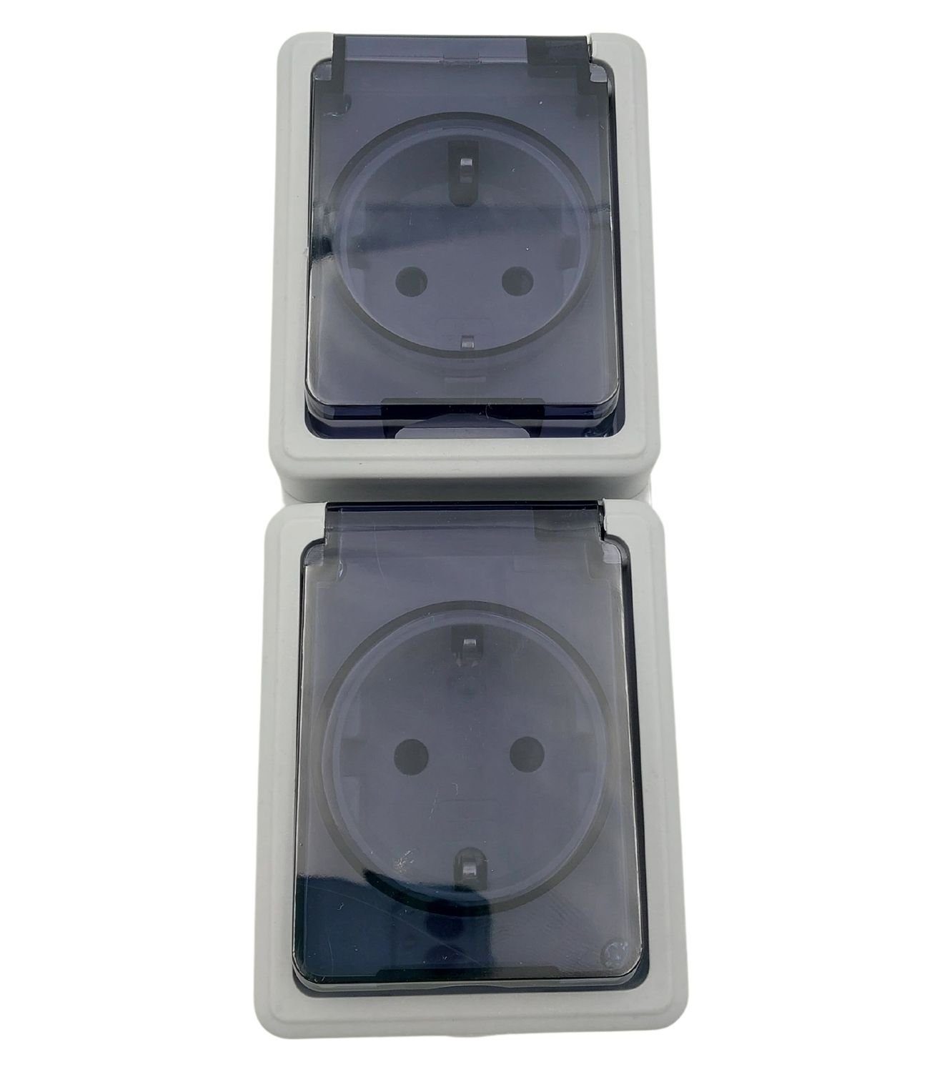 BURI Doppelsteckdose Gartensteckdose Ip44 grau