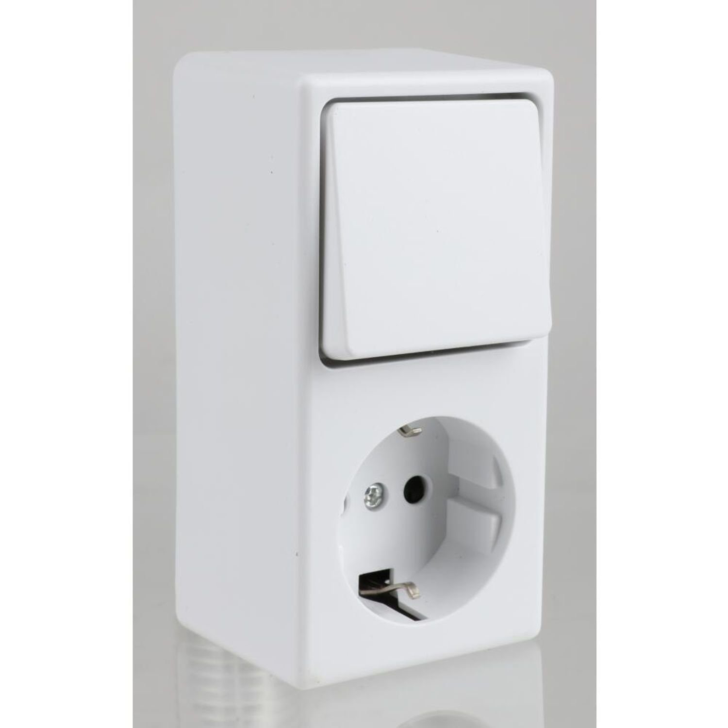Diese Aufputz-Steckdosenkombination aus Wechselschalter und Steckdose ist eine schöne Lösung um schnell und bequem Strom in Innenräume zu installieren. Durch die Aufputz-Installation ist diese Kombi ideal für Garagen oder Kellerräume geeignet. Sie wird senkrecht an den gewünschten Platz befestigt und ist durch ihre Schutzklasse auch für Feuchträume geeignet.