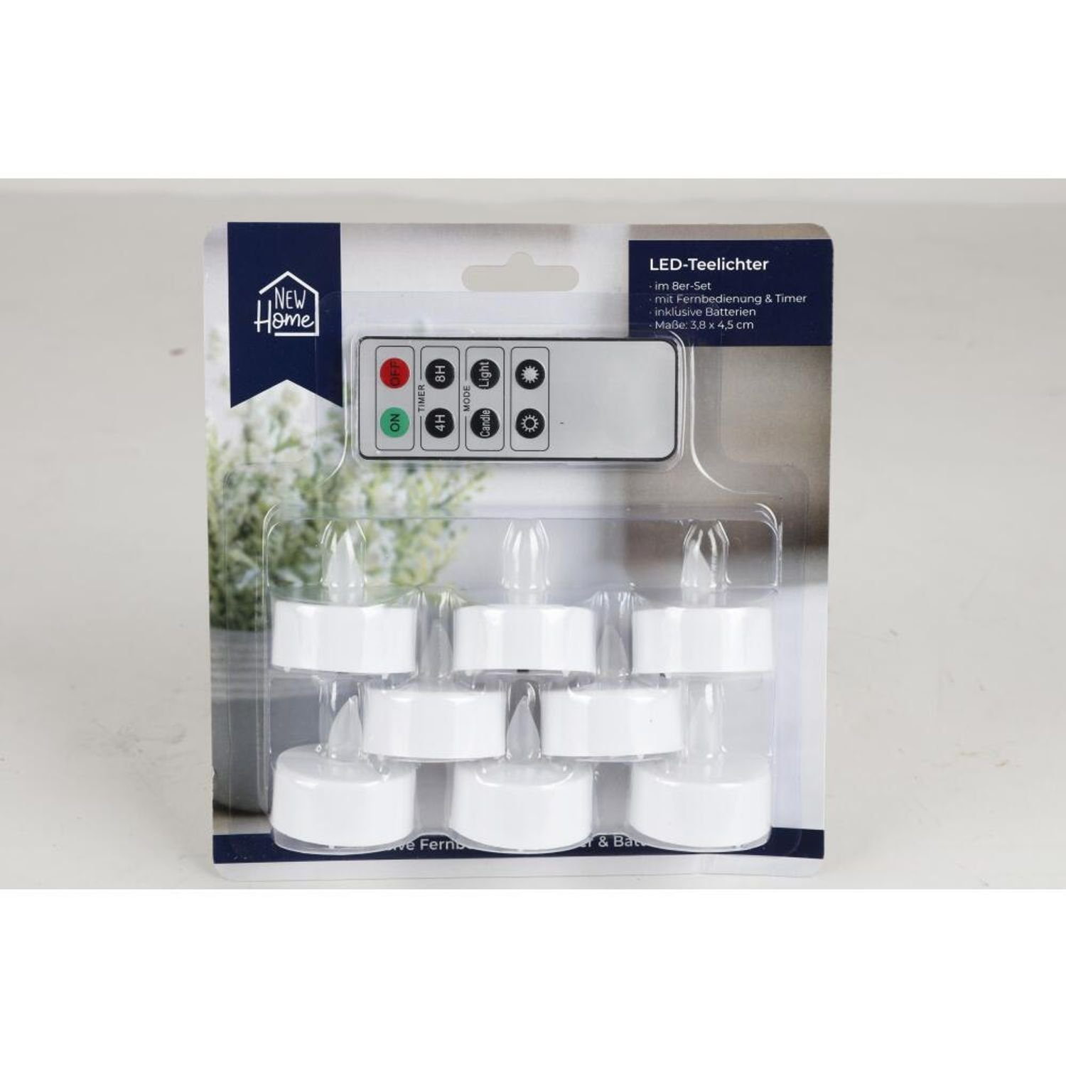 Schöne LED-Teelichte mit Fernbedienung und Timerfunktion im 8er-Set. Die Teelichte lassen sich mit Hilfe einer Fernbedienung kinderleicht steuern. Über die Multifunktionsfernbedienung können Sie die Kerzen an- bzw. ausschalten, einen Timer von vier oder acht Stunden anwählen sowie über eine Dimmfunktion die Lichtintensität nach belieben regulieren. Zusätzlich können Sie zwischen leicht flackerndem oder stetigem Licht wählen. Ideal für Küche, Wohn-, Ess- und Badezimmer – die sichere Alternative zu gewöhnlichen Teelichtern.
