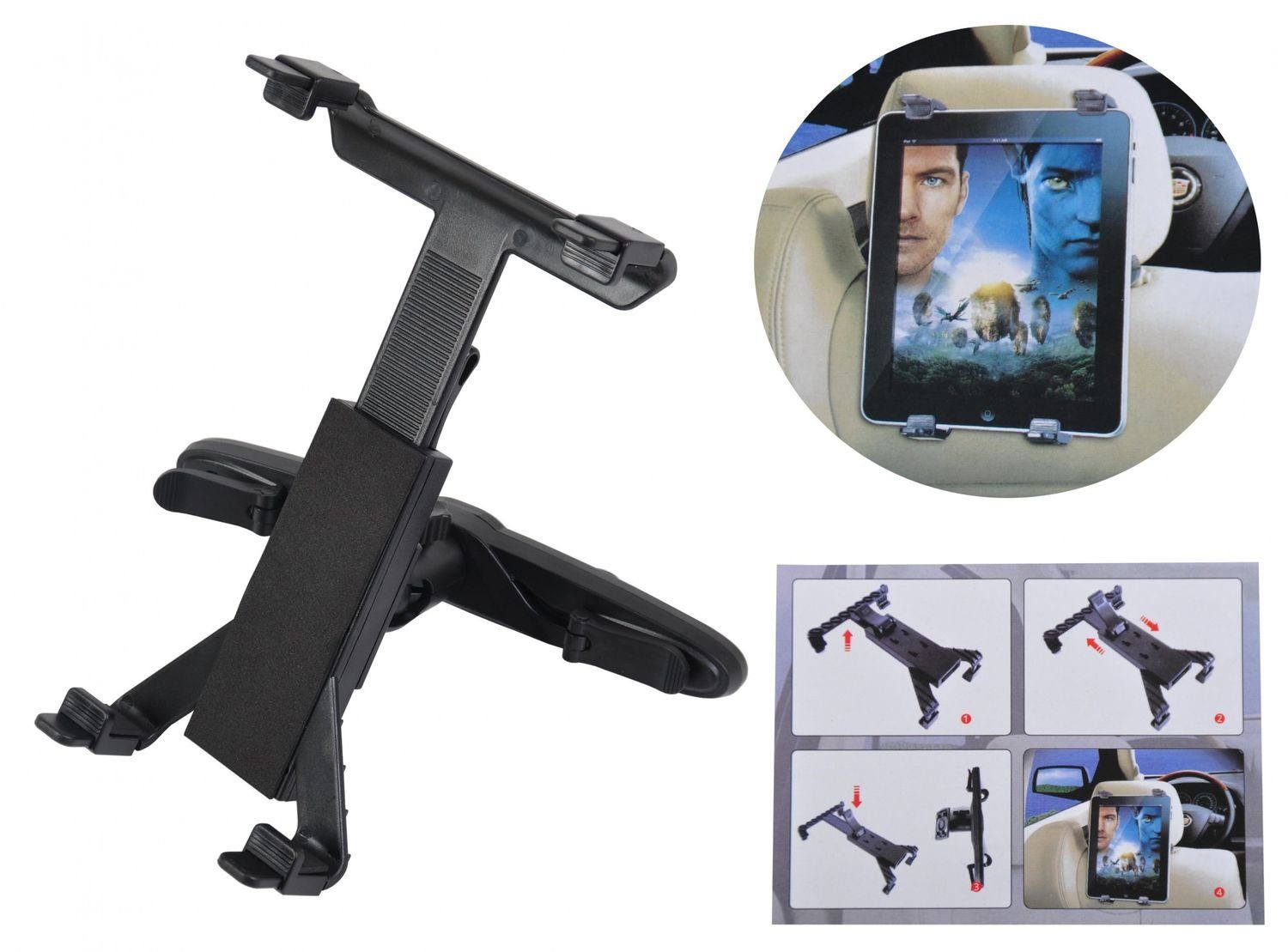 Universell einstellbare und 360º verstellbare Smartphon-Tablet Halterung für das Anbringen an den Kopfstützen ihres Pkw`s