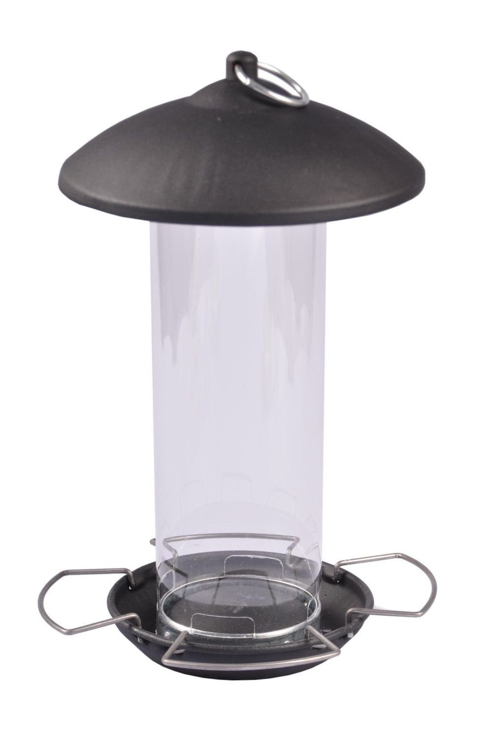 Schöne Vogelfuttersäule aus schwarz pulverbeschichtetem Metall. Hängen Sie die moderne, schlichte Säule einfach an einen Ast und schaffen Sie den Vögeln für die kalte Jahreszeit ein Plätzchen zur Futteraufnahme. Zum Befüllen einfach den Boden der Vogelfuttersäule abdrehen und das Futter einstreuen.