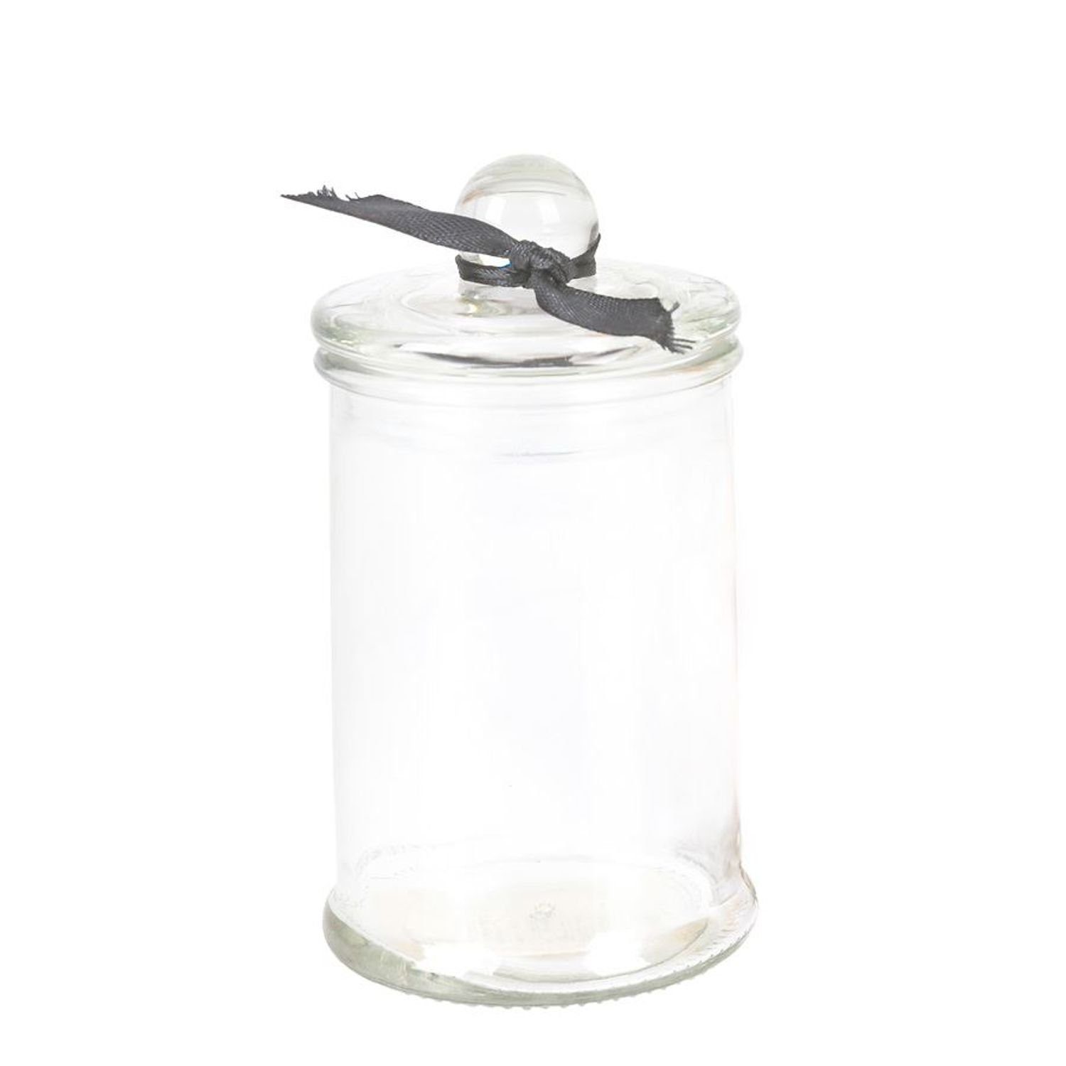 Hübsches Vorratsglas mit formschönem Deckel und Dekobändchen. Durch die große Öffnung ist das Glas leicht zu befüllen. Es ist luftdicht verschlossen und eignet sich ideal zum Verstauen von kleineren Lebensmitteln wie z.B. Gewürze, diverses Backdekor oder Süßigkeiten. Auch als kleines Mitbringsel, um selbstgemachte Köstlichkeiten zu verschenken, ist es hervorragend geeignet.