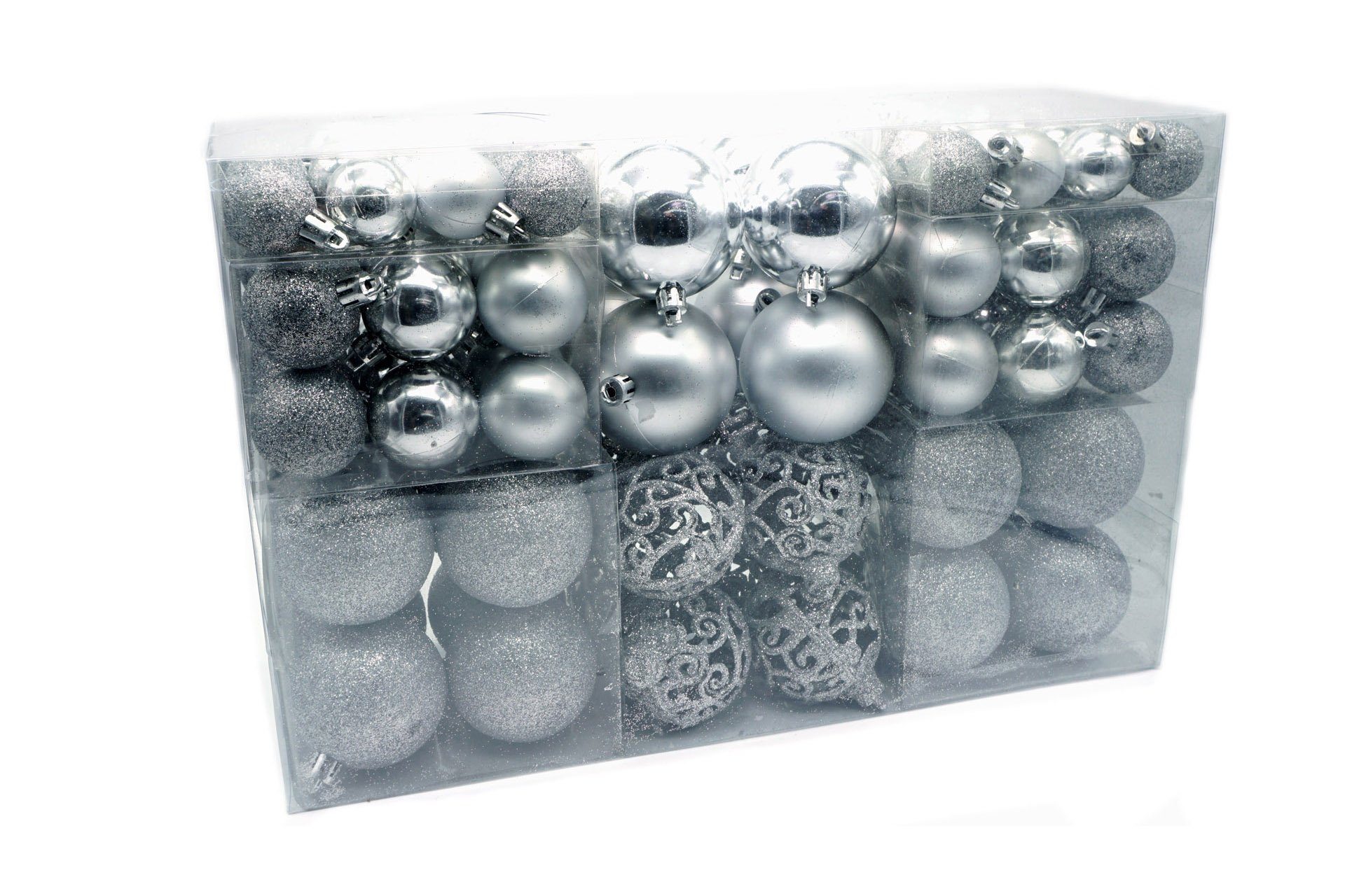 - 32x Kugeln á 6 cm Durchmesser (16x mit Glitzer/8x mit Glitzer und Muster/4x matt/4x glänzend)