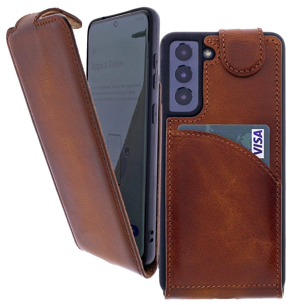 Schützen Sie Ihr wertvolles Samsung Galaxy stilvoll und zuverlässig mit unserer exklusiven Flip Case Leder-Klapphülle. Ein Accessoire, das in Qualität und Design keine Kompromisse eingeht.