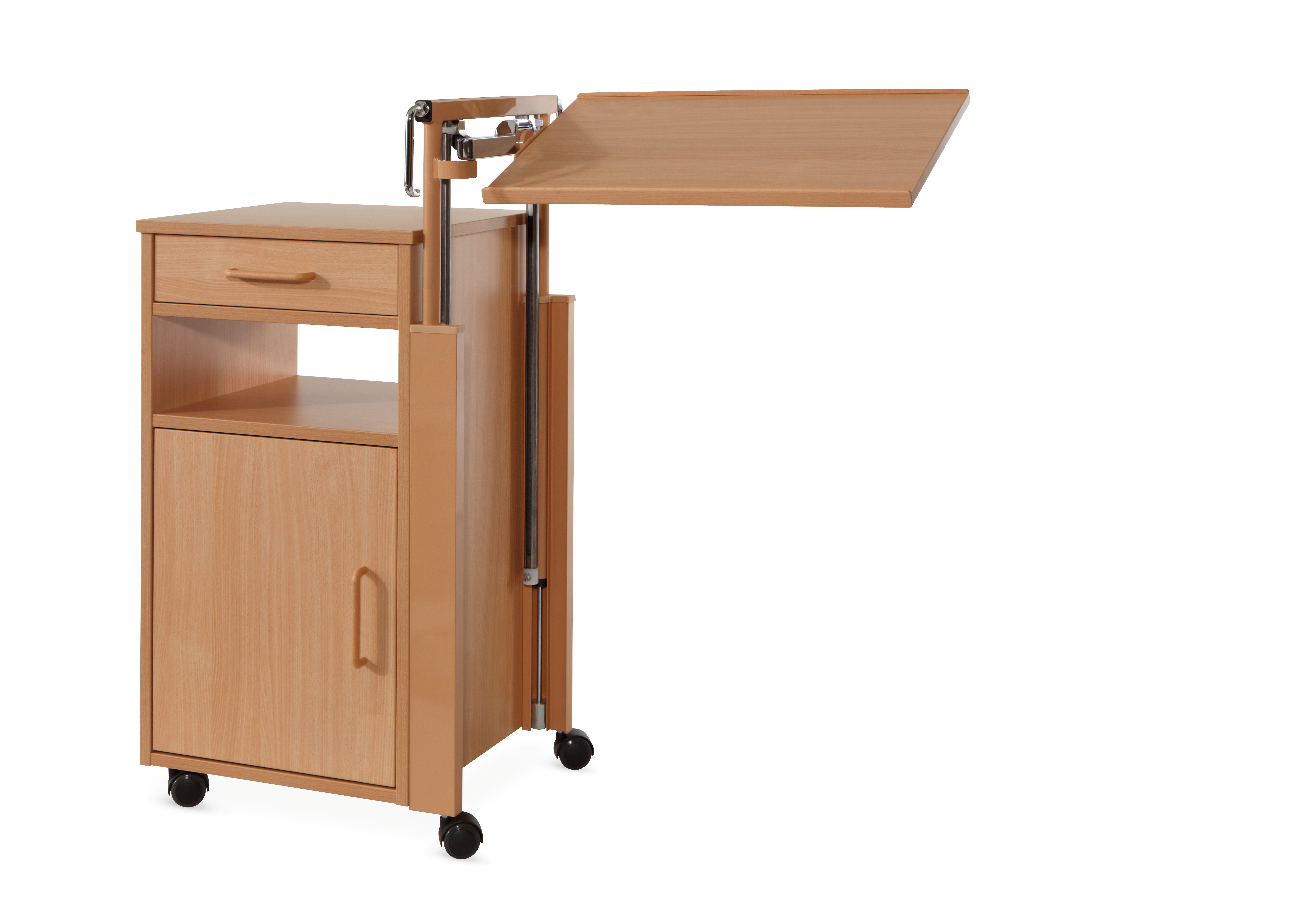 Anpassungsfähig: Höhe der Betttischplatte von 82 cm bis 112 cm einstellbar.