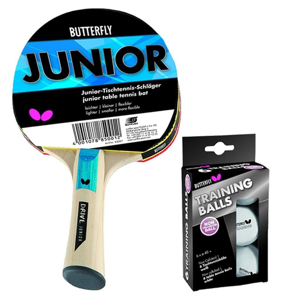 Lieferumfang | Butterfly Tischtennisschläger Junior + 6 Tischtennisbälle Training weiß |