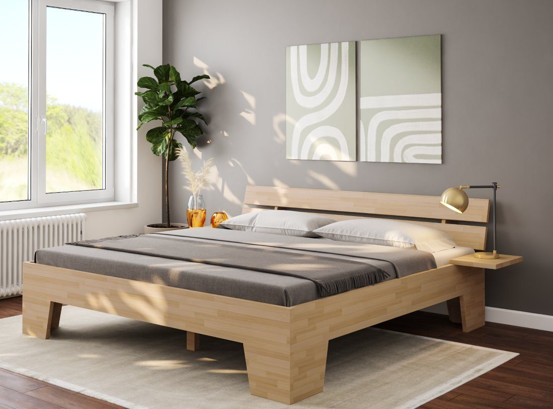 Massivholzbett aus Buchenleimholz mit Kopfteil, das Massivholz ist unbehandelt, also völlig natürlich; dieses Bett besitzt eine hohe Langlebigkeit und Robustheit