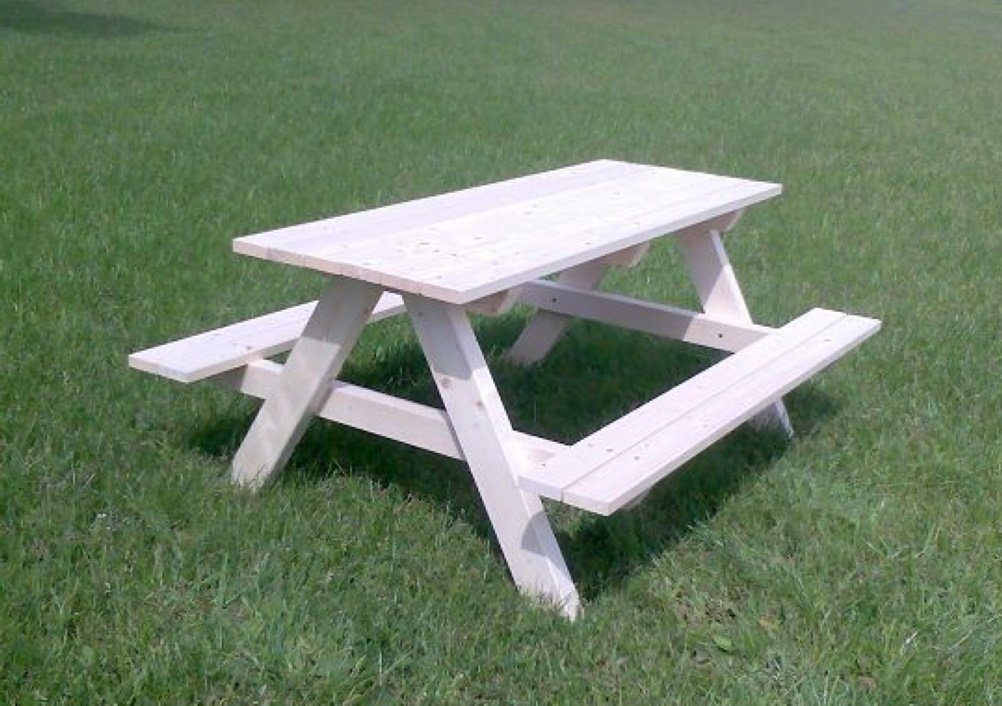 Dieser Picknick-Tisch kann auch für die Hausaufgaben an warmen Sommertagen genutzt werden.