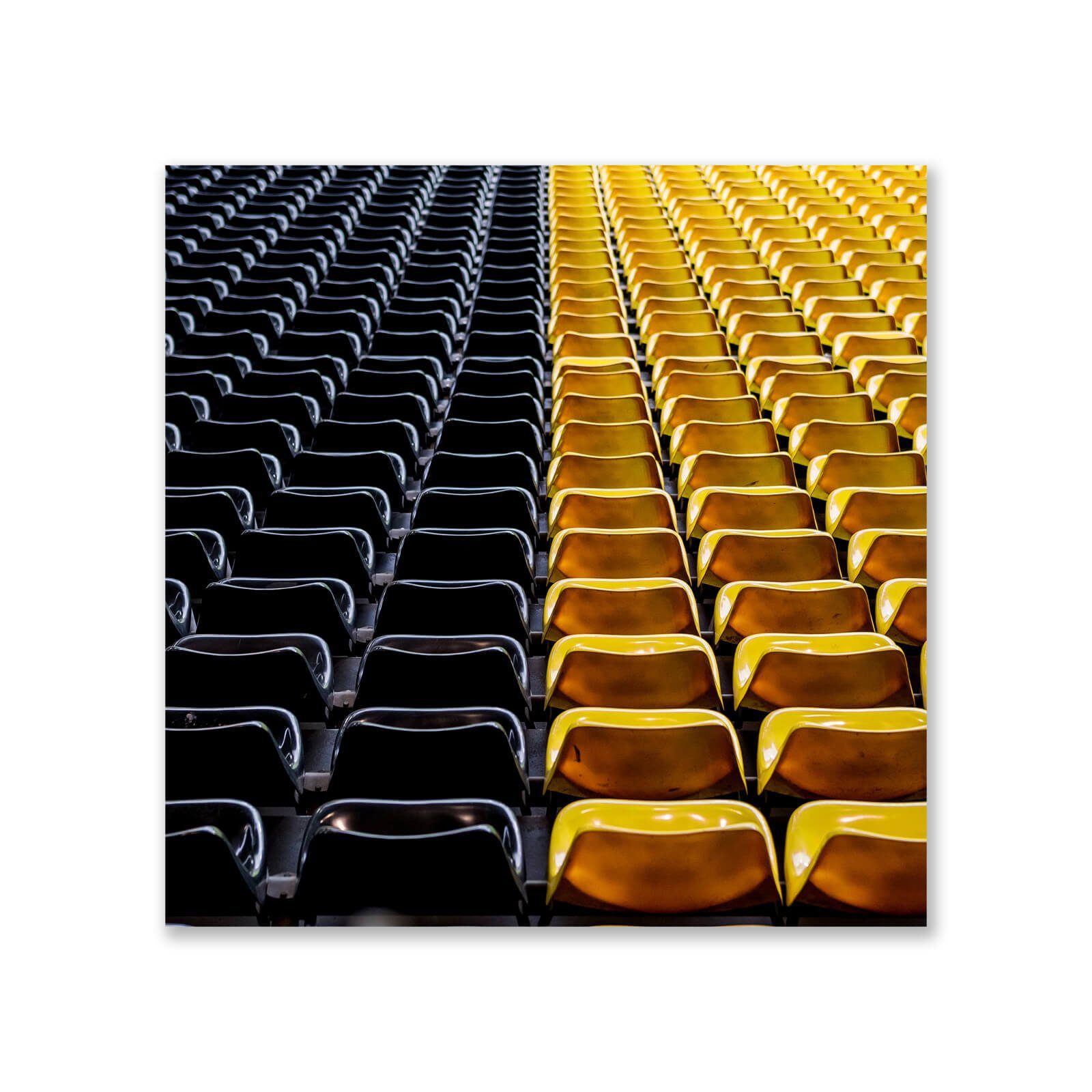 Das schwarzgelbe Sitzschalenmeer – der SIGNAL IDUNA PARK ist mit seiner Südtribüne weltberühmt. Aber genauso gebührt den schwarzgelben Sitzschalen Aufmerksamkeit, denn auf den Sitzplätzen erlebt man genauso die magische Gänsehaut-Atmosphäre. Dieser Kunstdruck kommt im Querformat 50 x 50 cm.