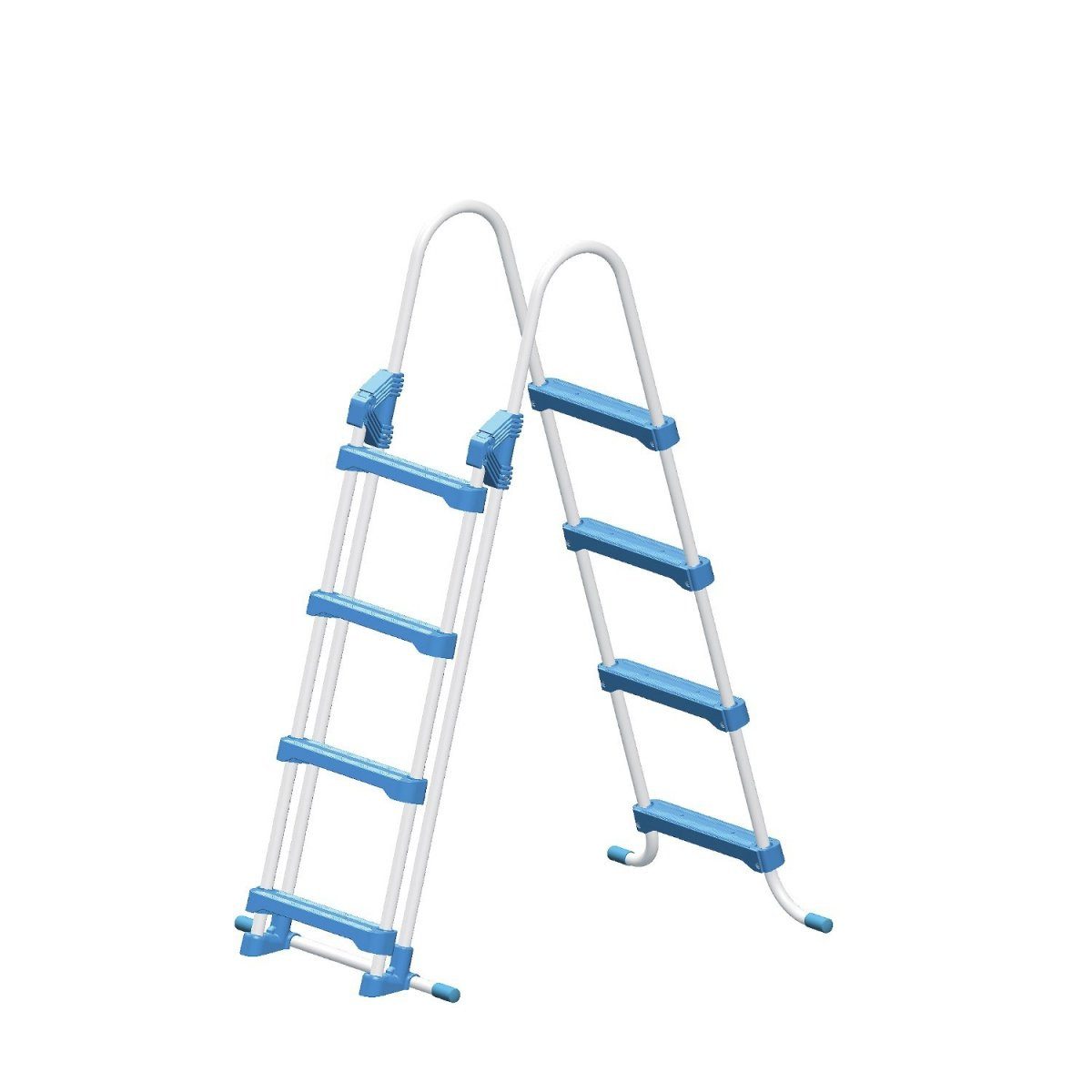 Aufgestellt werden kann sie ganz einfach bei freistehenden Becken mit einer Höhe bis 120 cm. Durch die hochwertigen Materialien der Leiter liegt die maximale Tragfähigkeit bei 90 kg.