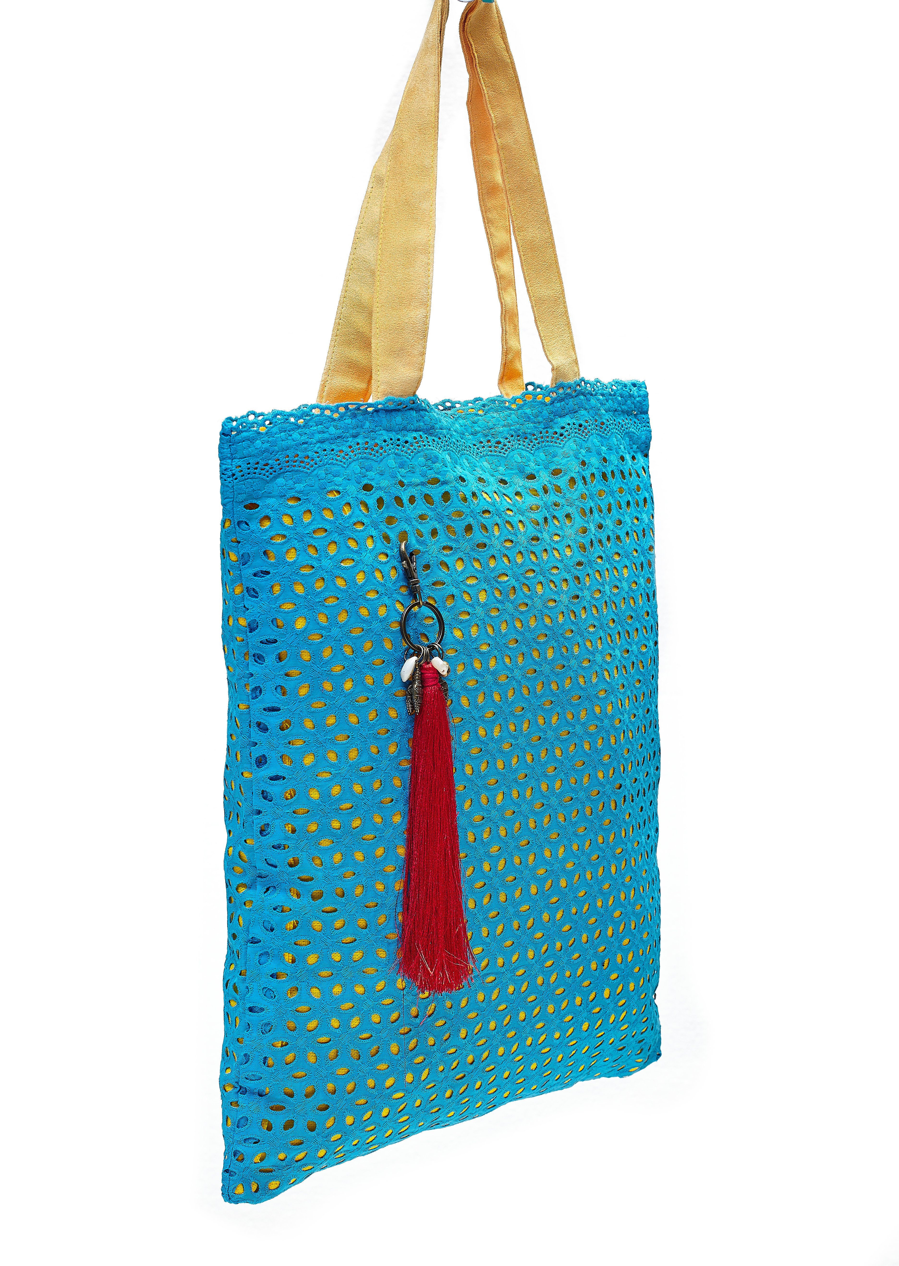 Applikationen | eine kleine Dekoration, eine bunte Kunstseidenquaste mit maritimen Elementen |