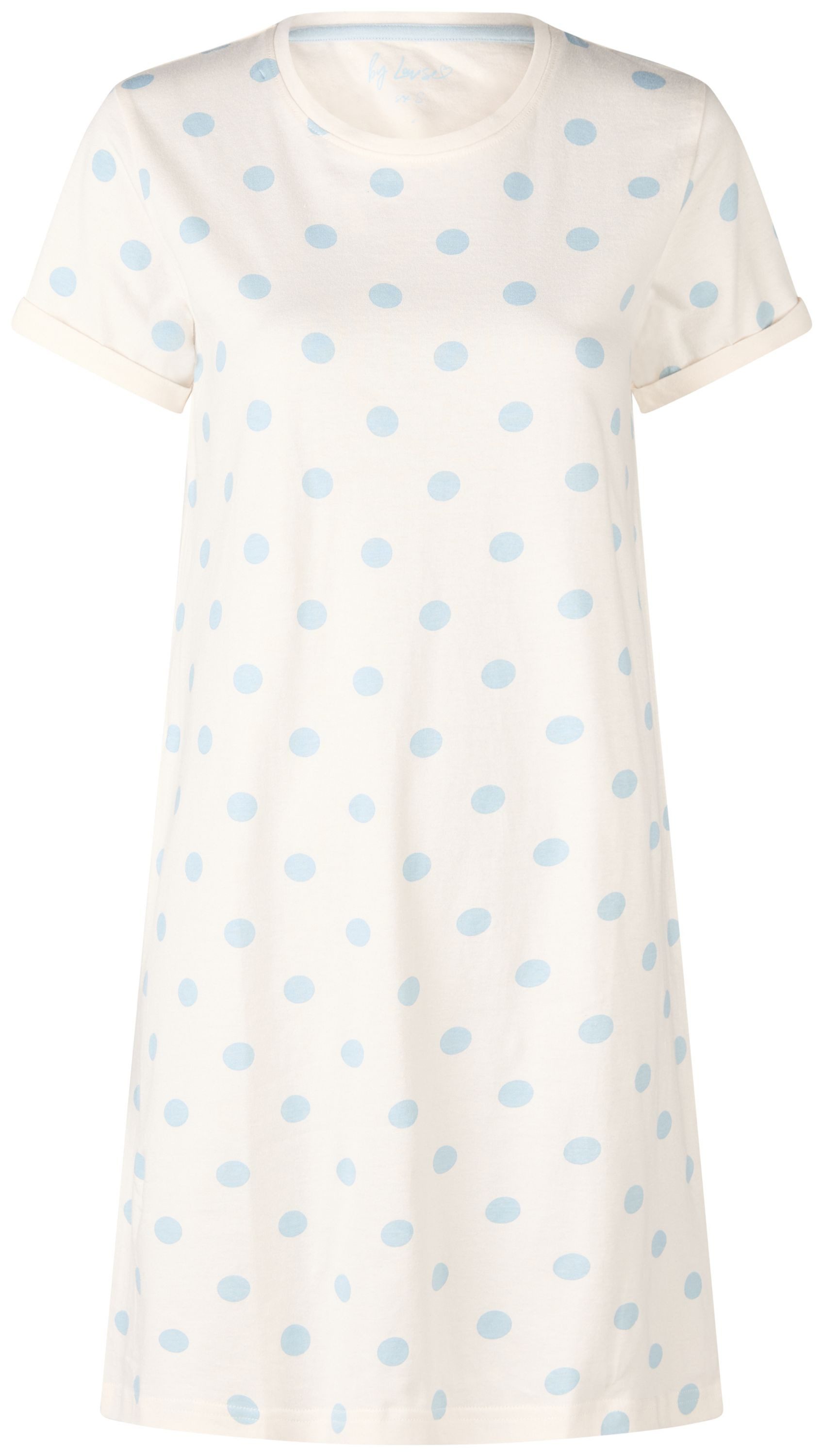 Das 90 cm lange Nachthemd begeistert mit seinen zarten Farben und einem charmanten Design aus hellblauen Punkten auf cremefarbenem Grund. Die kurzen Ärmel und der bequeme Schnitt bieten viel Bewegungsfreiheit und sorgen für ein leichtes, luftiges Tragegefühl.