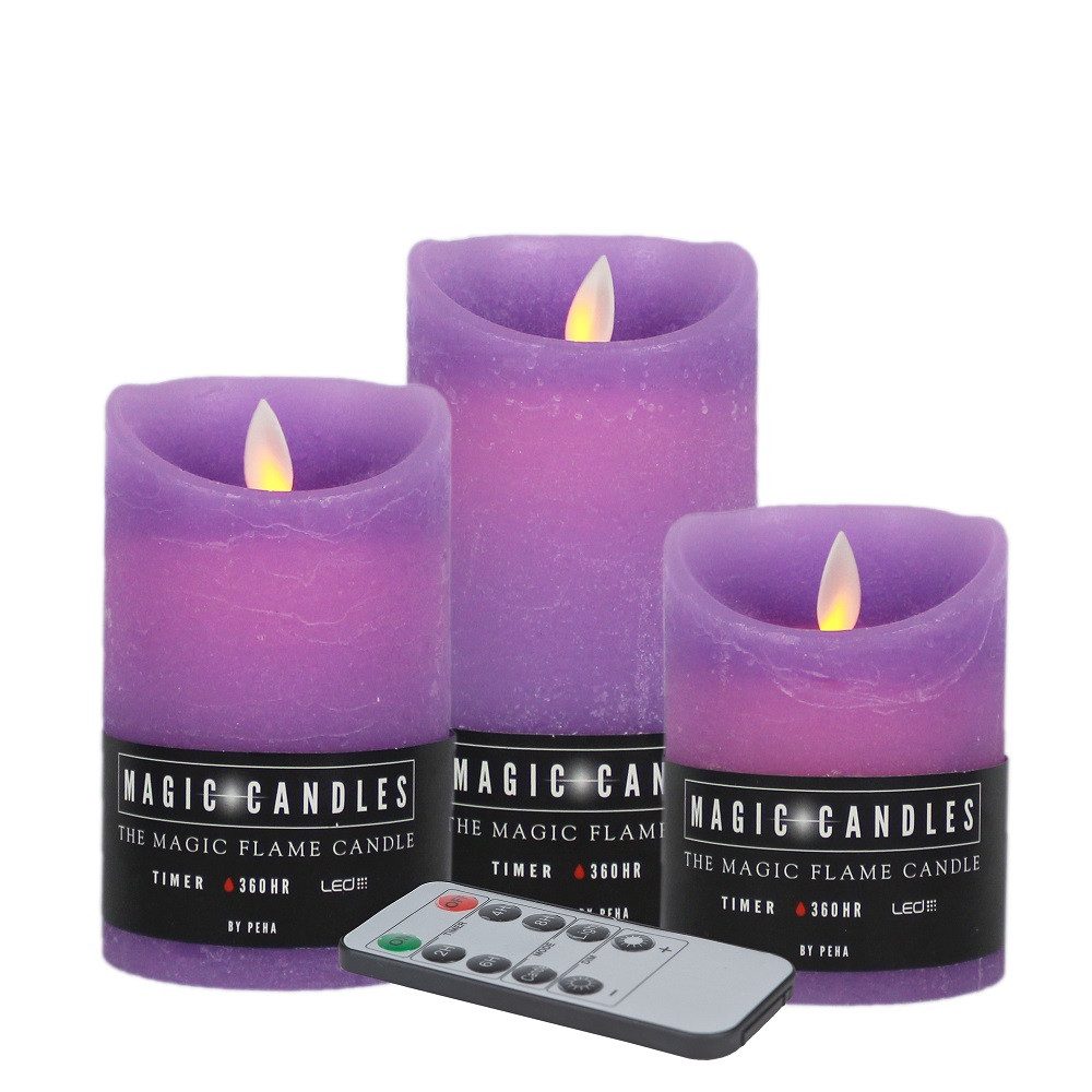 3er LED Echtwachskerzen Set lavendel FB Timer Dimmer Flackermodus MB-20184