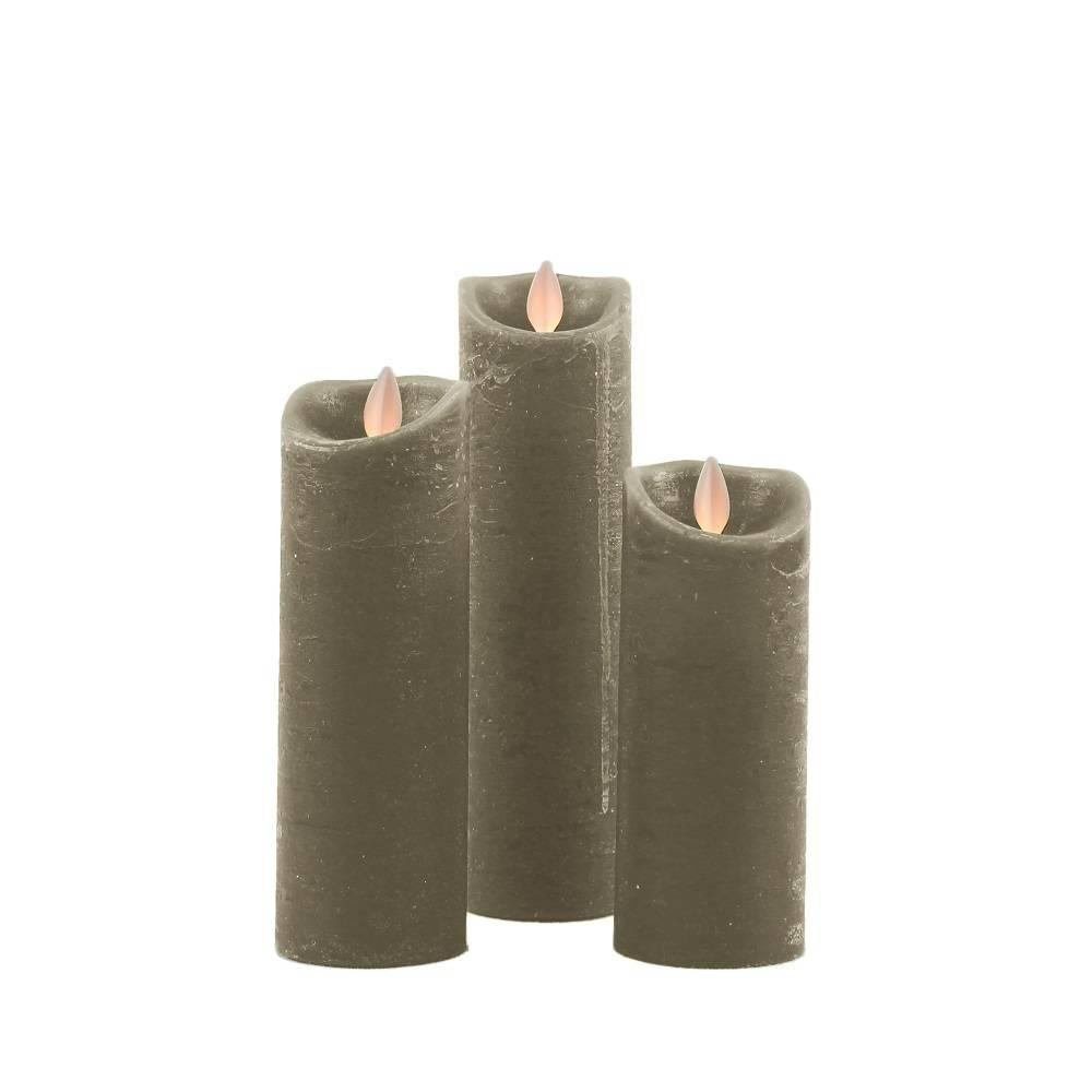 3er LED Echtwachskerzen Set beige FB Timer Dimmer Flackermodus MB-20197