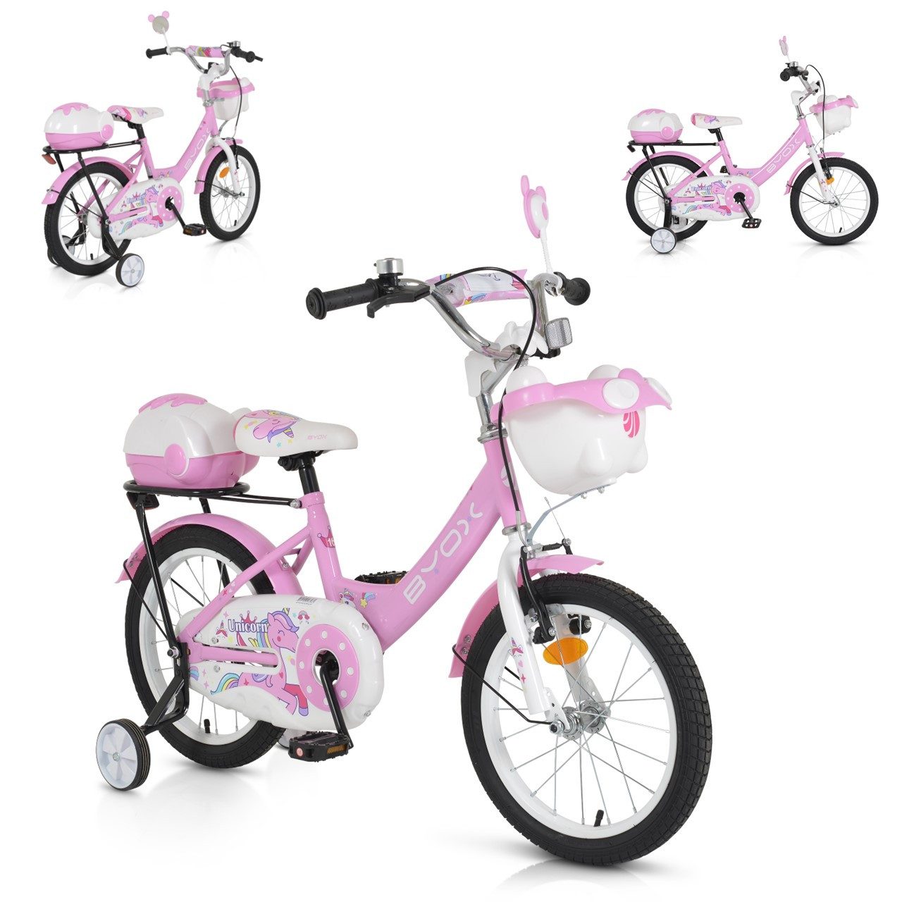 Besonderheiten Artikel Byox Kinderfahrrad 16 Zoll 1602, Stützräder, höhenverstellbar, Klingel, Körbe: