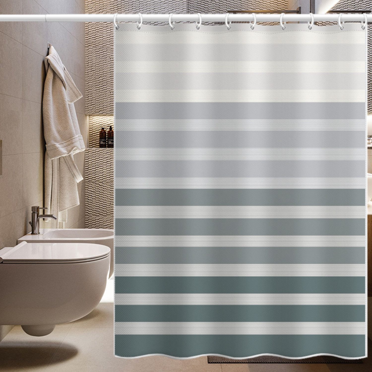 Der Duschvorhang wird mit 12 weißen Kunststoffhaken geliefert, PVC-frei, geeignet für gerade oder gebogene Duschstangen.