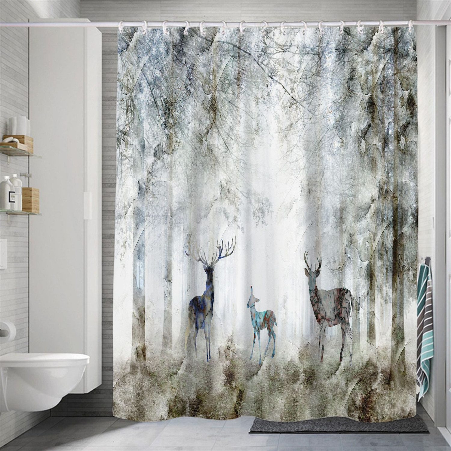 Der Duschvorhang wird mit 12 weißen Kunststoffhaken geliefert, PVC-frei, geeignet für gerade oder gebogene Duschstangen.