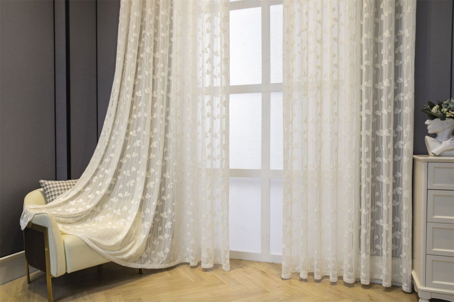 Diese Vorhänge sind sehr leicht und dünn, alle in dichten Maschen gehäkelt, alle mit einem schönen und sehr realistischen Blattmuster, das auch einen hohen Lichtfiltereffekt erzeugt.