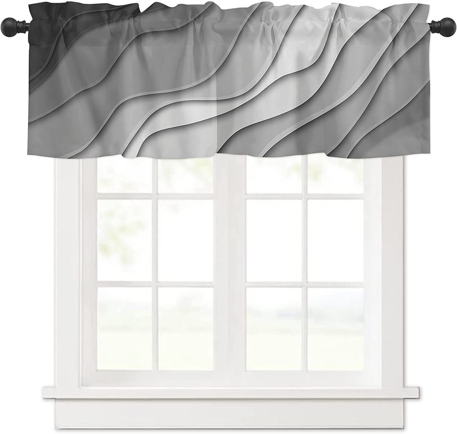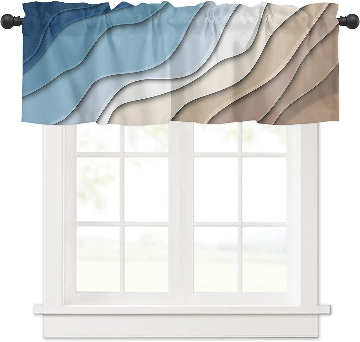 Dieses Küchenvorhang- und Volant-Set verfügt über ein einzigartiges blaugrünes abstraktes Meereswellendesign, um Ihrer langweiligen Küche mehr Farbe zu verleihen.