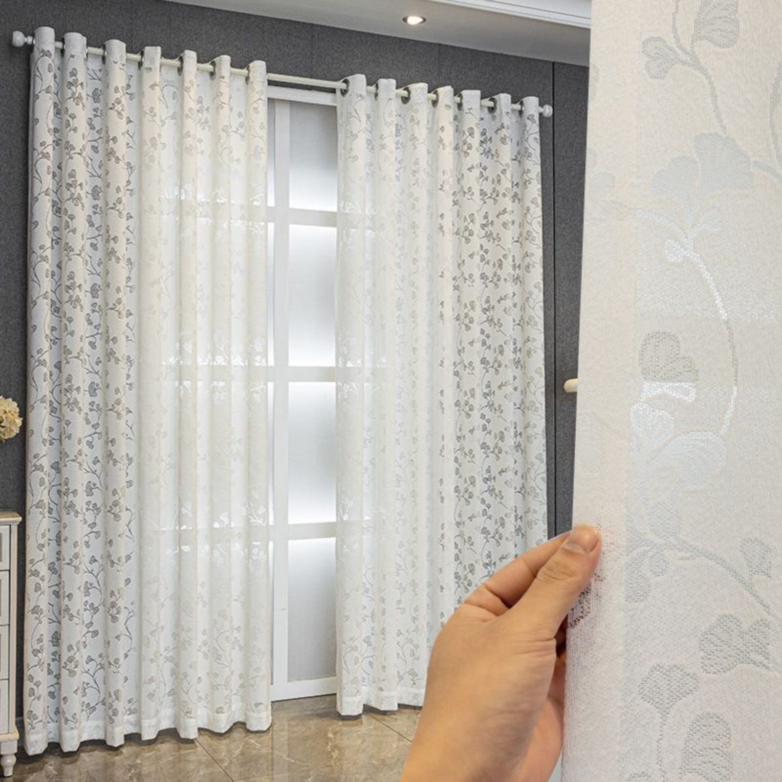 Der Lochdurchmesser des Vintage-Vorhangs beträgt 4 cm. Verwenden Sie eine Gardinenstange mit einem Durchmesser von 2–3 cm durch das Loch, um den Vorhang aufzuhängen.