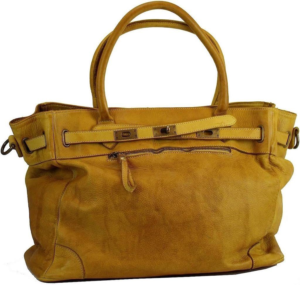Size: 43 x 15 x 32 cm MADE IN ITALY Material: Leather Leder (Zustand: ohne Mangel, neu) Die Färbung des Leders, die hellen und dunklen Schattierungen sind so gewollt um bewusst den Vintagelook herzustellen, bzw. abzubilden. Die Taschen werden von Hand gefärbt (getupft). Ein Lieblingsstück für´s italienische Lebensgefühl aus Italien - Eine Tasche für Liebhaber! Handlich, hochwertig und äußerst attraktiv! Die absolut perfekte Tasche für den Alltag, zum Ausgehen oder für´s Business! Mit dieser eleganten Tasche ziehen Sie ganz sicher alle Blicke auf sich! Diese ist aus super schönem und weichem Leder gefertigt und wird mit einem Reißverschluss verschlossen. Das grosse geräumige Innenfach bietet unheimlich viel Platz. Innen gibt es dann noch seitlich ein Reißverschlussfach und 2 kleine Einsteckfächer für Telefon und Geldbörse. Mit den Tragegriffen kann man den Shopper bequem über der Schulter tragen. Es gibt zusätzlich noch einen langen verstellbaren und abnehmbaren Schultergurt ca. 127cm. Ausstattung Details: -vorn und Hinten ein Reißverschlussfach - grosses geräumiges Hauptfach - Innen seitlich Reißverschlussfach und 2 Einsteckfächer - Innenfutter aus Baumwolle - schließt mit einem Reißverschluss - Mit Tragegriff locker über der Schulter tragbar - zusätzlich ist ein langer abnehmbarer und verstellbarer Schultergurt dabei ca.127cm Tolles Leder