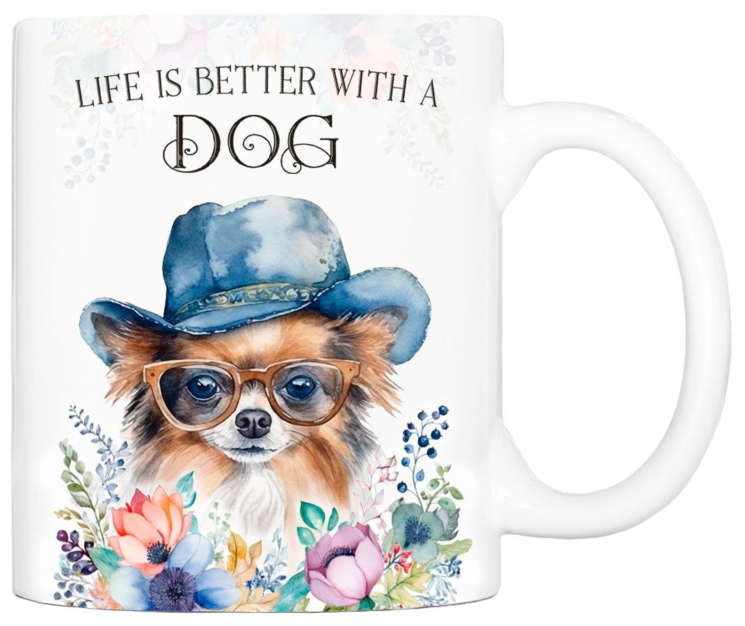 Die fröhlich bunte Tasse mit Hunderasse im Watercolor-Stil und "Life is better with a Dog" Schriftzug macht den Kaffee am Morgen und den Tee am Abend zu etwas ganz Besonderem!