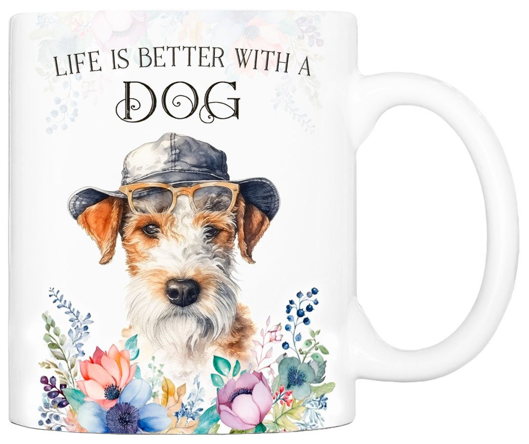 Die fröhlich bunte Tasse mit Hunderasse im Watercolor-Stil und "Life is better with a Dog" Schriftzug macht den Kaffee am Morgen und den Tee am Abend zu etwas ganz Besonderem!