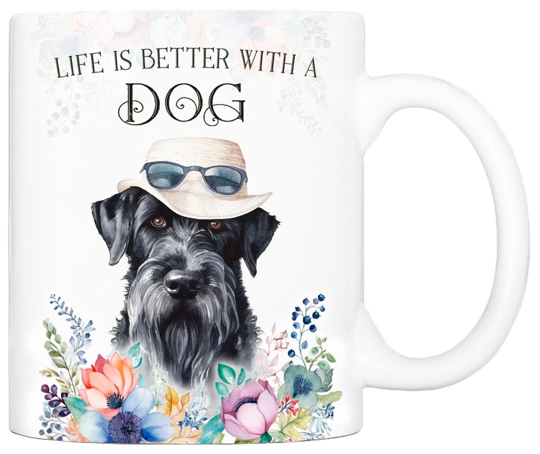 Die fröhlich bunte Tasse mit Hunderasse im Watercolor-Stil und "Life is better with a Dog" Schriftzug macht den Kaffee am Morgen und den Tee am Abend zu etwas ganz Besonderem!