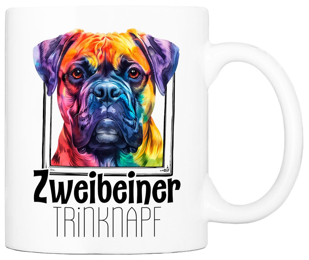 Cadouri Tasse ZWEIBEINER TRINKNAPF mit Bullmastiff - Kaffeetasse, Keramik, mit Hunderasse, beidseitig bedruckt, handgefertigt, Geschenk, 330 ml