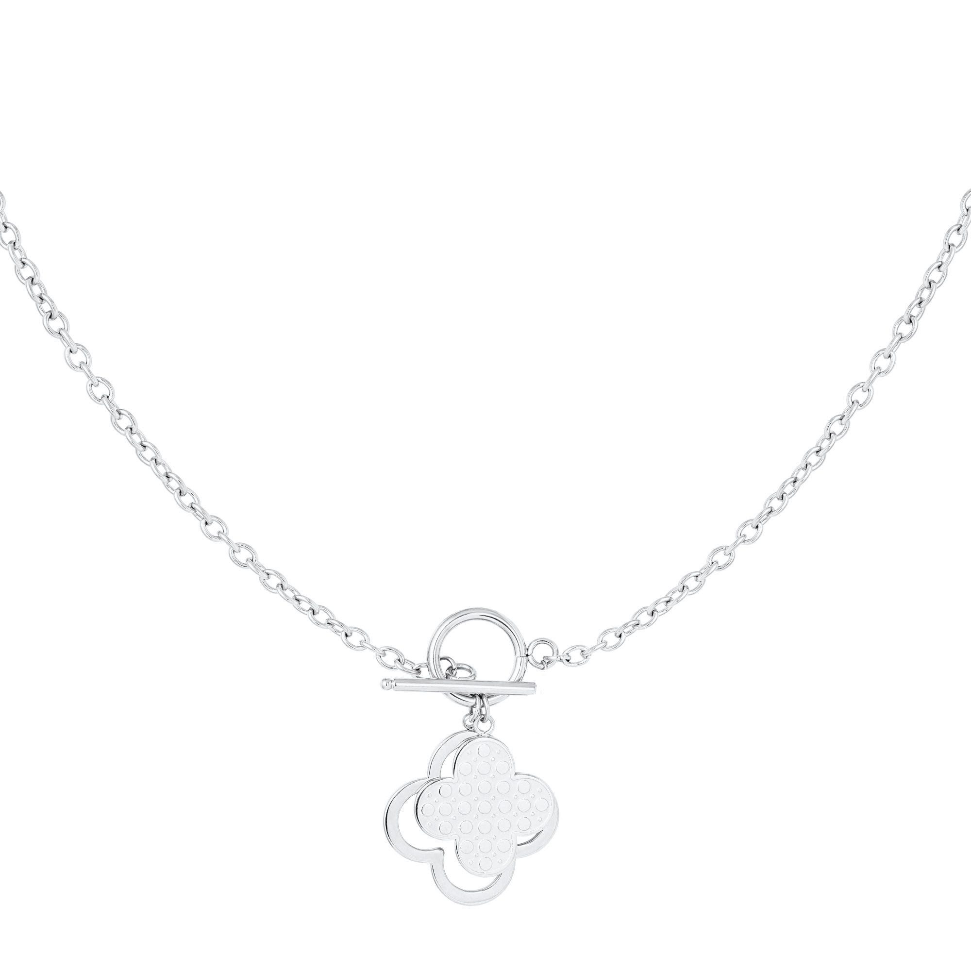 Die massive Kette ist 45 cm lang und aus wasserfestem Edelstahl gefertigt. Am trendigen Knebelverschluss glänzen zwei Charms im angesagten Kleeblatt Design.