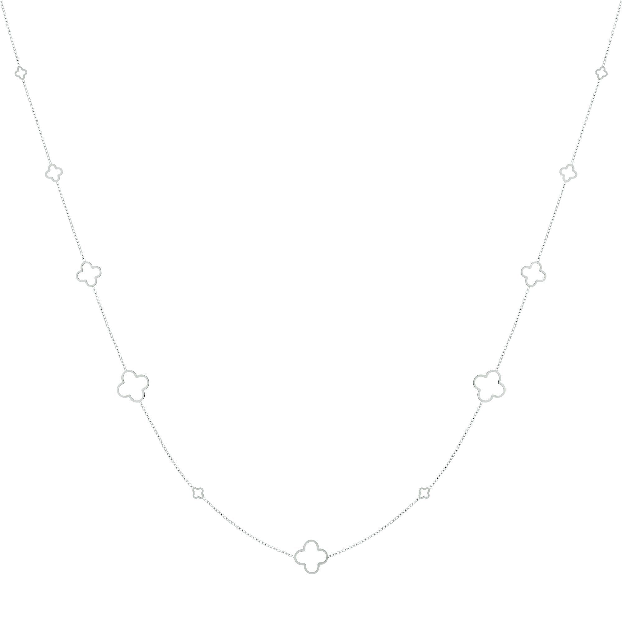 Die lange Halskette, die von filigranen Kleeblatt-Anhänger geziert wird, wurde aus langlebigem 316L Edelstahl gefertigt.
