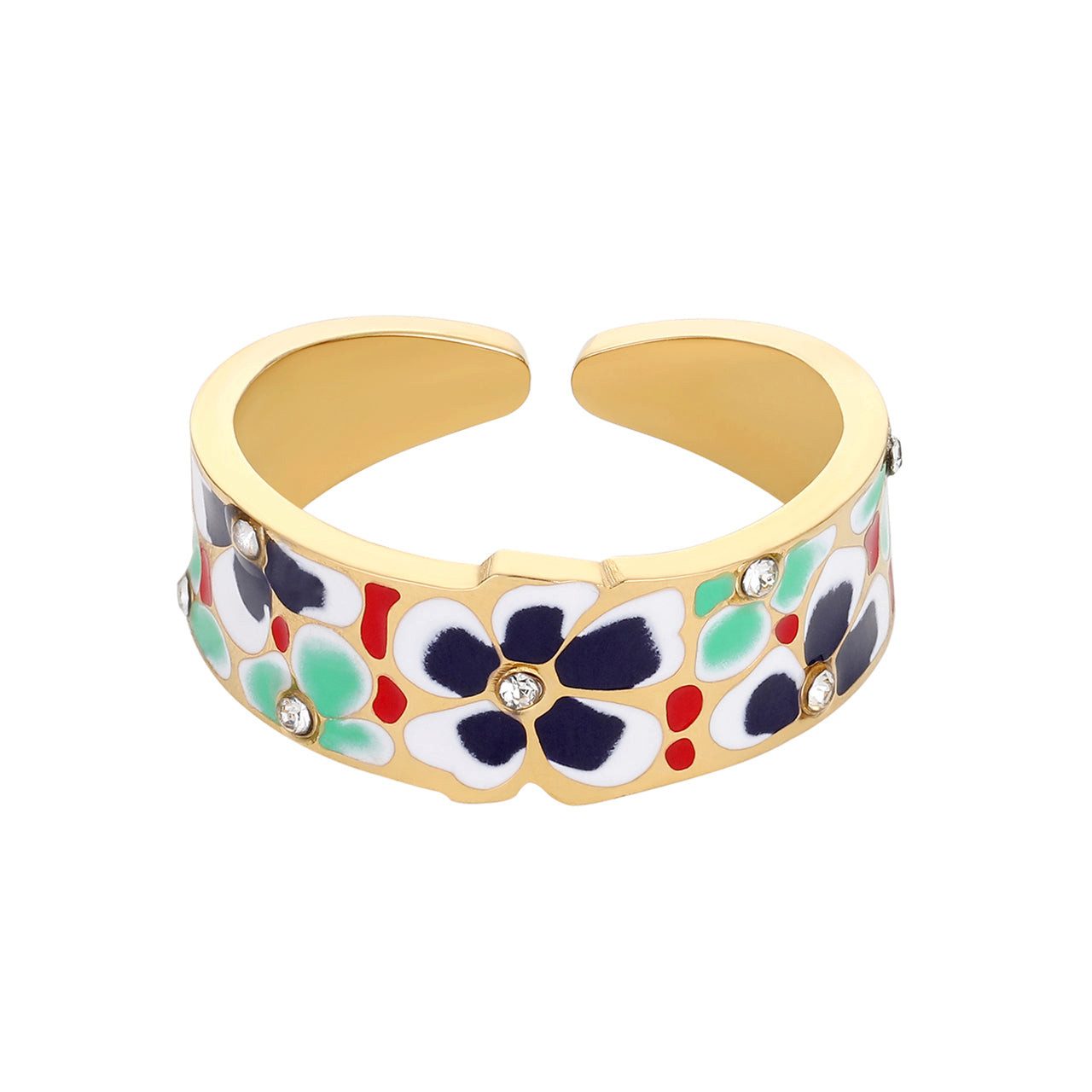 MAGGIE wurde mit größter Liebe zum Detail entworfen. Das farbenfrohe Blumenmuster, das in Emaille den Ring verziert, gibt diesem außergewöhnlichen Ring sein besonderes Design.