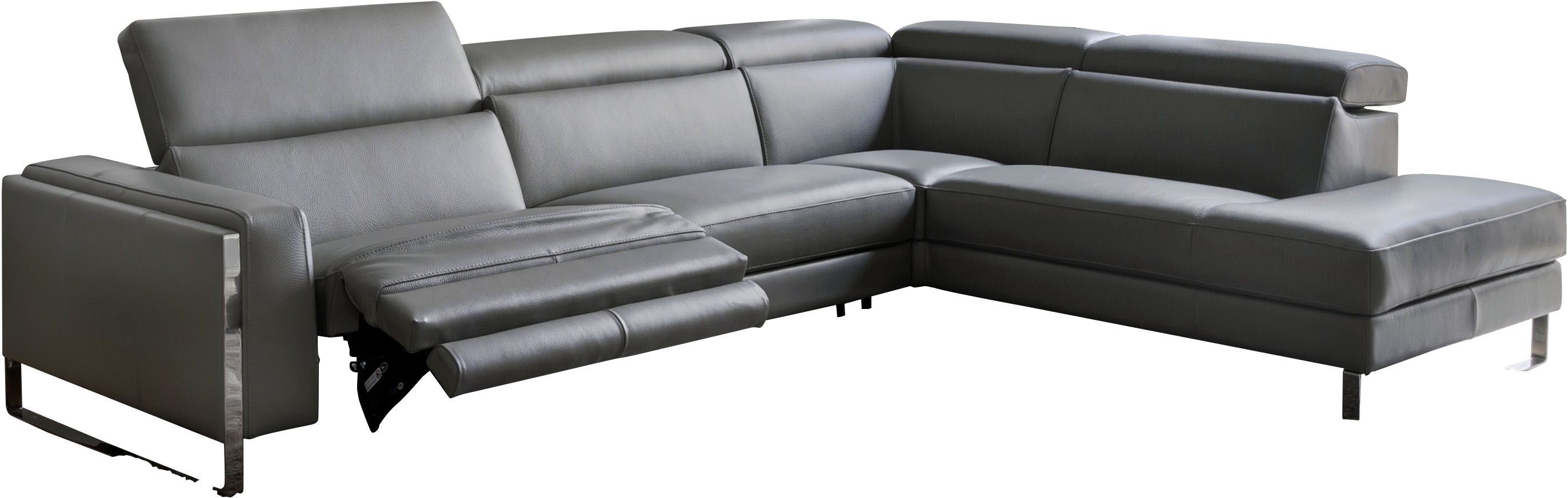 Ein Treffpunkt für die Familie, Ruheoase und Kuschelzone — dieses Ecksofa von CALIA ITALIA ist mehr als eine Couch. Es ist elektrisch verstellbar, sodass du mit der Fernbedienung die Ausrichtung einfach per Knopfdruck anpassen kannst. Von vorne betrachtet ist die Ottomane nach rechts ausgerichtet. Die maximale Belastbarkeit liegt bei einem Gewicht von 400 Kilogramm. Die silberfarbenen Füße aus Metall sind korrosionsbeständig und besonders langlebig. Dieses Modell wurde von Hand gefertigt.