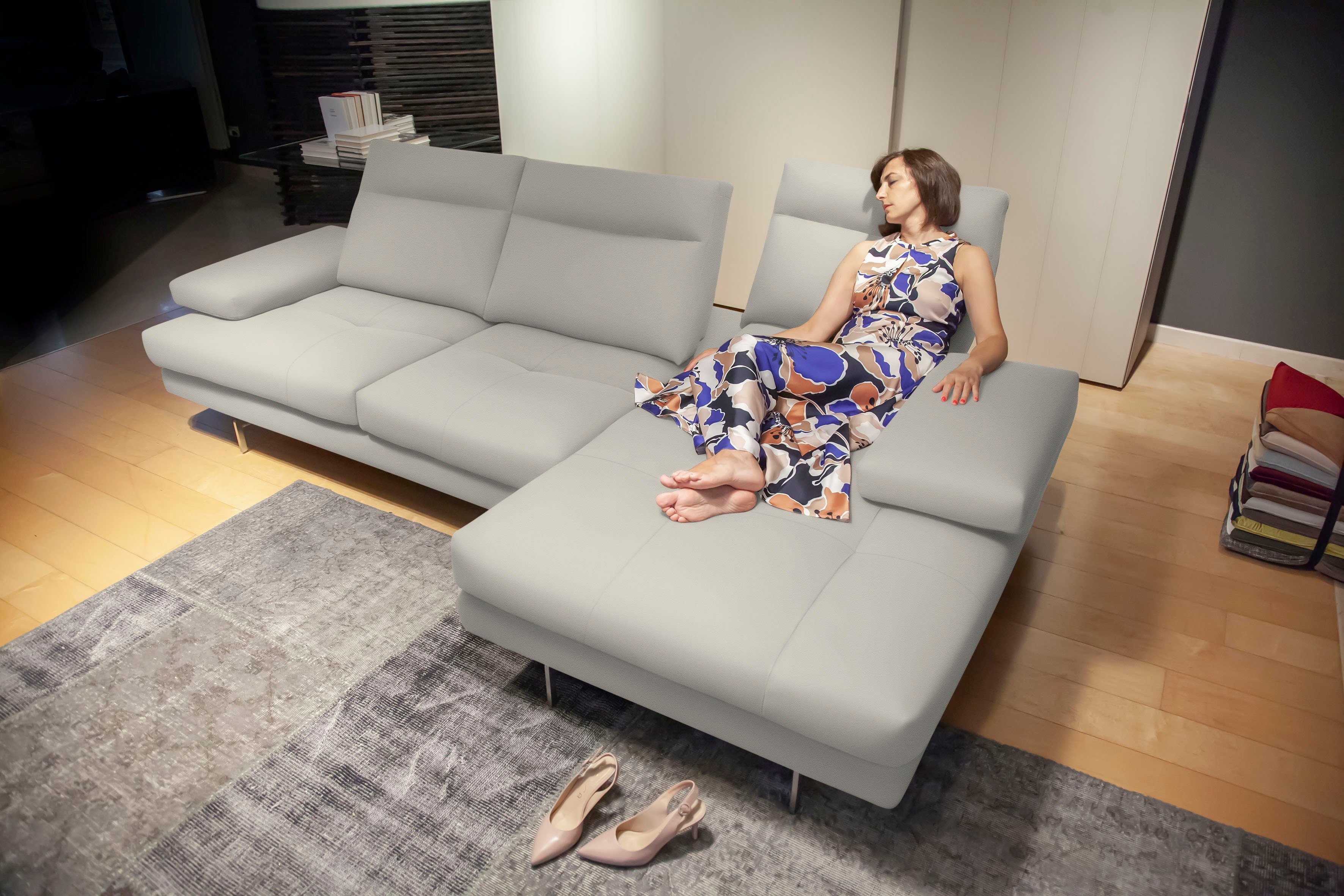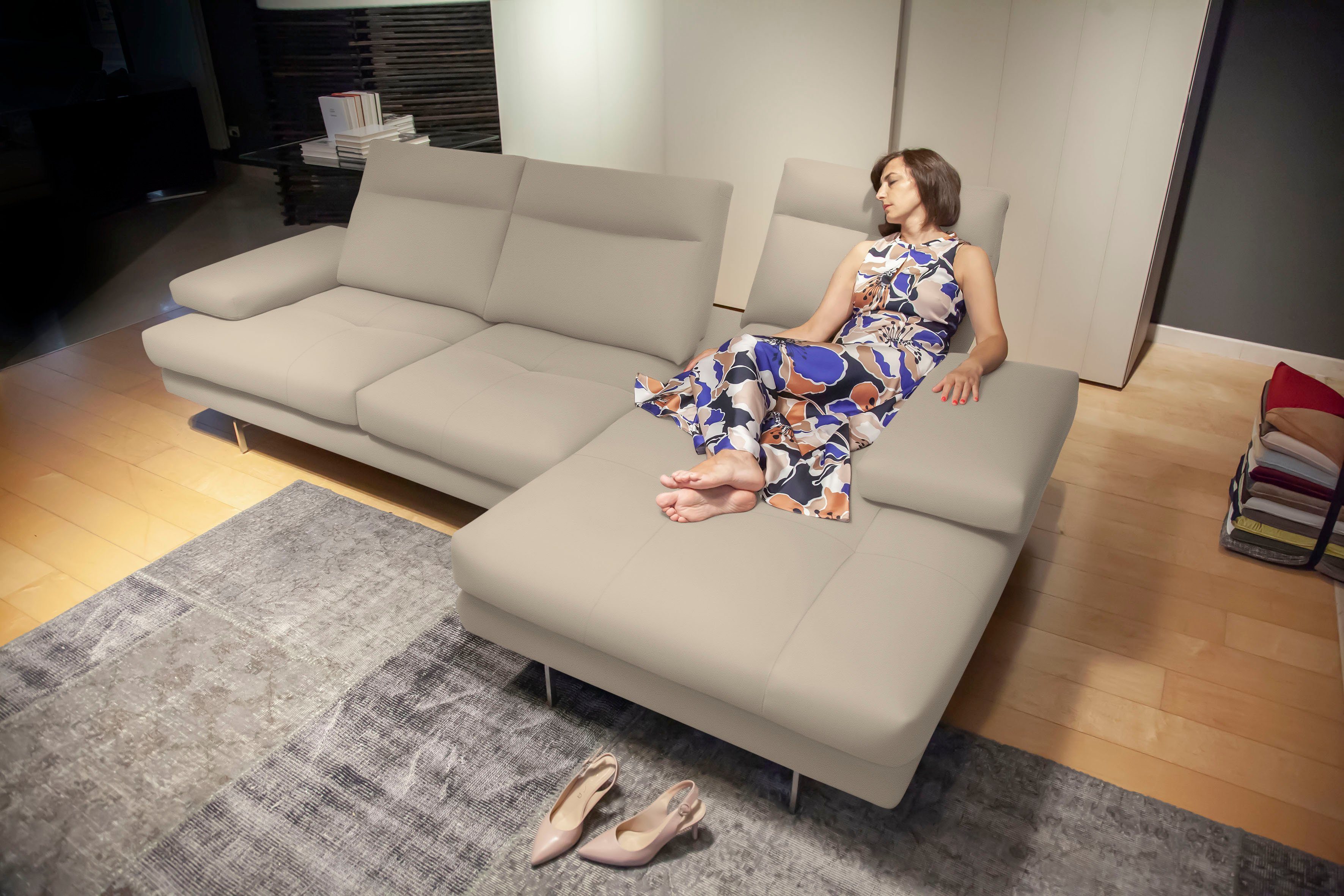 Dieses geräumige Ecksofa »Toby Wing, L-Form, Designsofa mit sensationellem Sitzkomfort« von CALIA ITALIA ist wie gemacht, um die gesamte Familie oder Freunde für einen Serien-Marathon zu versammeln. Das Produkt ist manuell verstellbar. So kannst du mit ein paar Handgriffen deine bevorzugte Position einstellen. Von vorne betrachtet ist der Longchair nach rechts ausgerichtet. Die chromfarbenen Füße aus Metall sind korrosionsbeständig und besonders langlebig. Lass dir von unserem Montage-Team, im Rahmen des kostenlosen Aufbau- und Premiumservice, unter die Arme greifen, wenn du beim Aufbau Unterstützung brauchst. Dieses Modell wurde von Hand gefertigt.