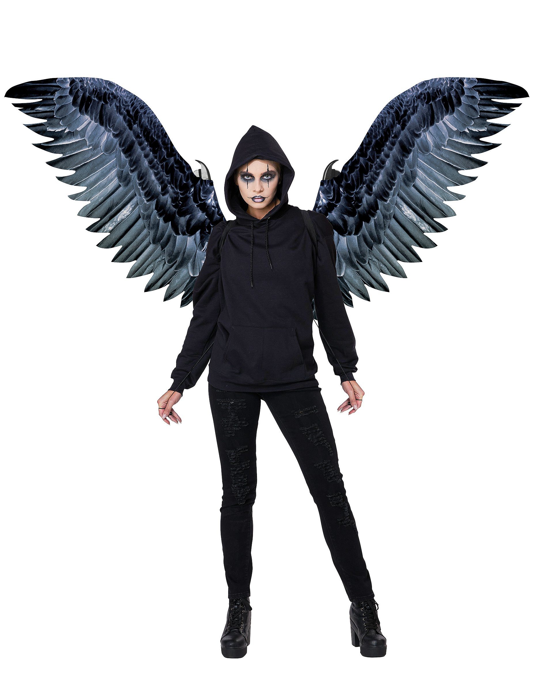 Diese übergroßen Krähenflügel für Erwachsene beeindrucken mit einer Spannweite von rund 180 cm – ideal, um sich in ein geheimnisvolles oder düsteres Wesen zu verwandeln. Die realistische Federoptik verleiht Ihrem Look eine zugleich elegante und unheimliche Ausstrahlung. Dank der leichten Konstruktion sitzen die Flügel angenehm am Körper und werden mit Trägern sicher befestigt, sodass sie für die meisten Größen passen. Die Flügel können vom Träger mittels Zugschnüren bewegt werden. Perfekt für Halloween, Cosplay oder jede Gelegenheit, bei der Sie als faszinierende Gestalt mit Flügeln auftreten möchten!