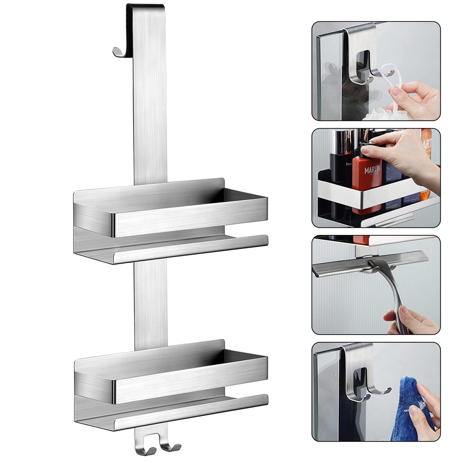 Der Duschkorb ist für rahmenlose Glastüren bis zu einer Stärke von 12 mm geeignet. Es ist wichtig, vor der Bestellung die Maße Ihrer Duschtür zu überprüfen, um sicherzustellen, dass der Halter passt. Die Installation ist denkbar einfach: Es gibt keine komplizierten Zubehörteile. Befestigen Sie einfach die beiden Klammern mit den mitgelieferten Werkzeugen und Schrauben, richten Sie die vorstehenden Löcher auf den Klammern mit den Schlitzen auf der Duschanlage aus, und hängen Sie das Regal an die Duschtür.