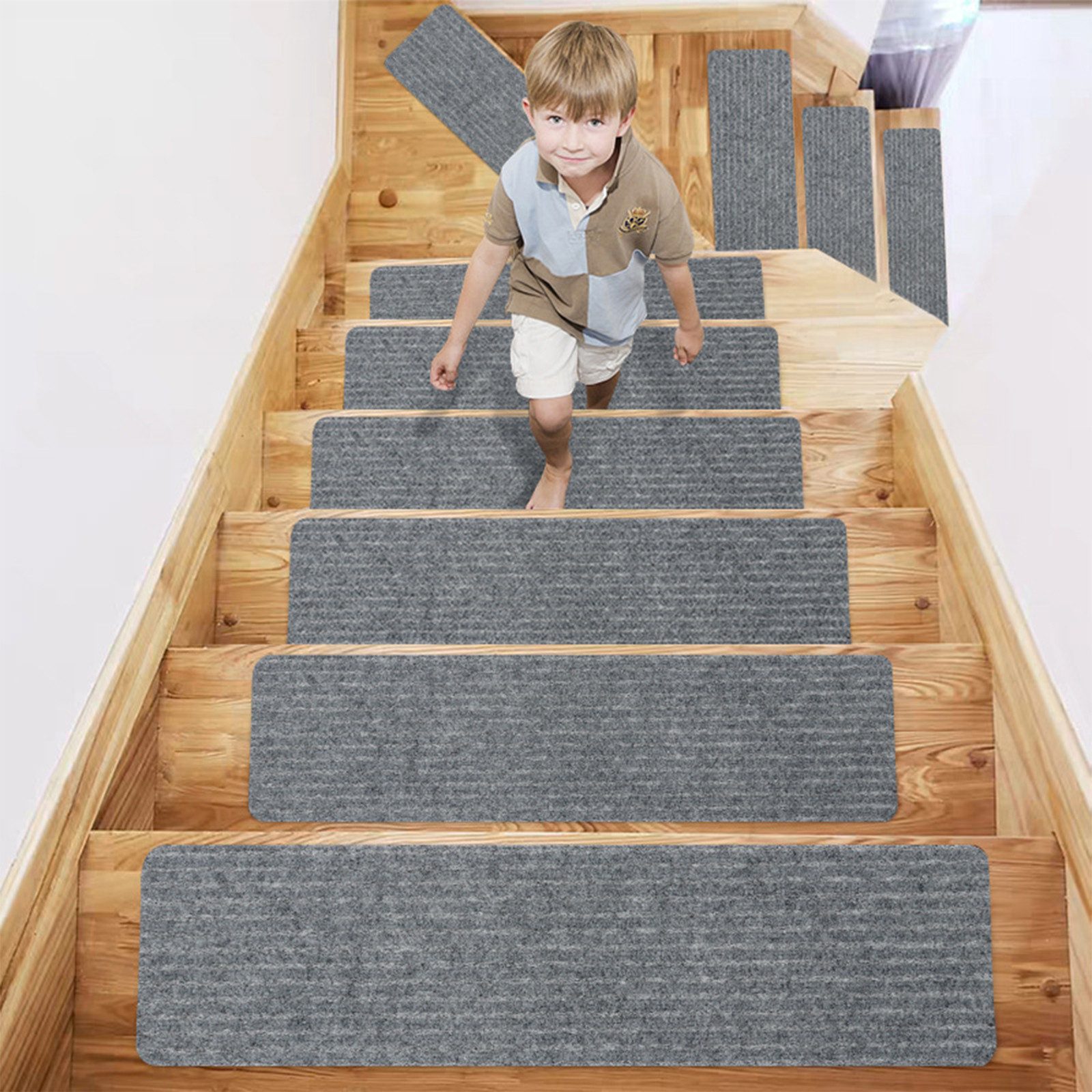 CALIYO 15-Tlg Premium Stufenmatten Treppenteppich Rutschfest, Selbstklebend Stufenmatte, XL 76x20cm, Waschbar