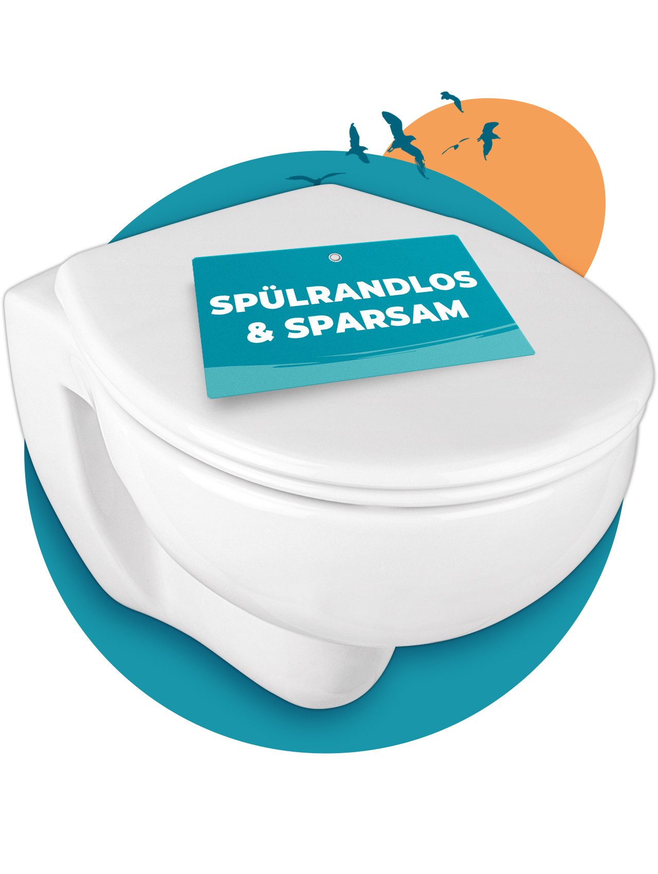 Wasserspar-WC: Dank fehlendem Spülrand ist das Modell äußerst hygienisch und pflegeleicht, da sich kein Schmutz unter dem Rand festsetzen kann. Zudem lässt sich mit einer maximalen Spülmenge von 6 Litern der Wasserverbrauch reduzieren.