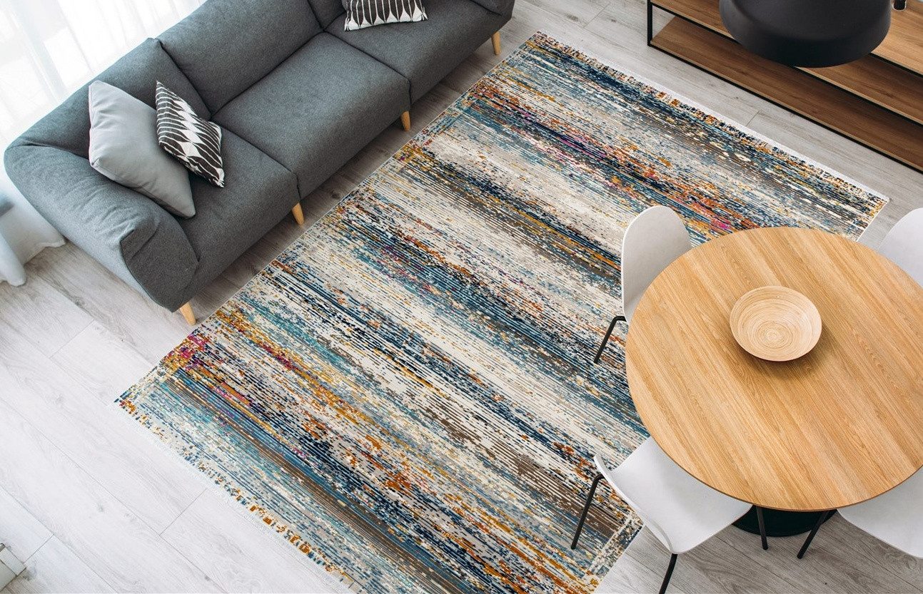 Maschinell gewebter Teppich | Beim Auslegen des Teppichs kann durch das Aufrollen der Teppich etwas wellig erscheinen, dieses legt sich nach kurzer Zeit aus. Sie können dieses etwas beschleunigen wenn Sie den Artikel in gegenläufiger Richtung nochmals aufwickeln. |