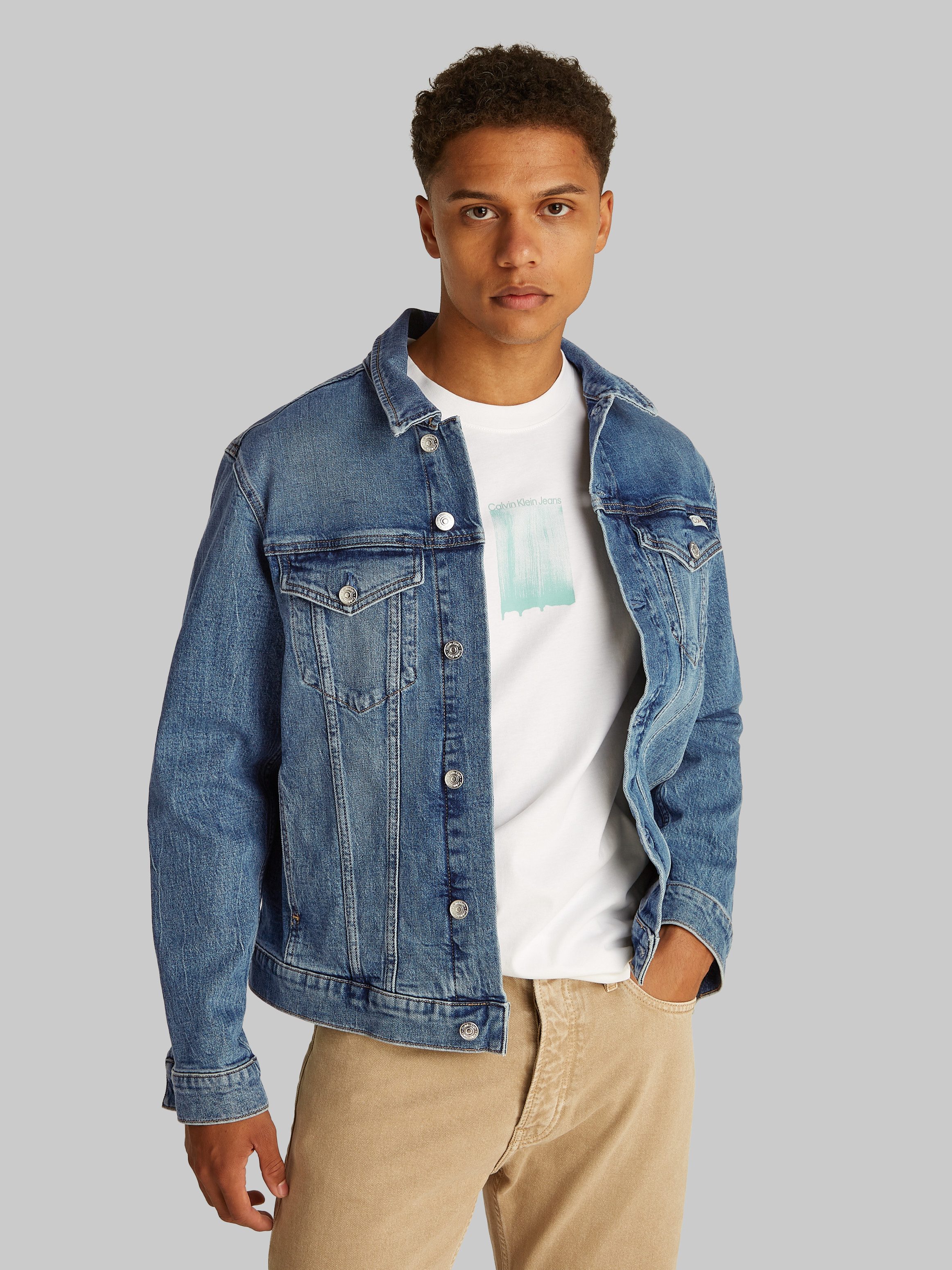 Beim Gassigehen mit dem Hund oder zum spontanen Besuch bei Bekannten — die Herren-Jeansjacke »SLIM DENIM JACKET« von Calvin Klein Jeans ist eine gute Idee für deine Outfits!