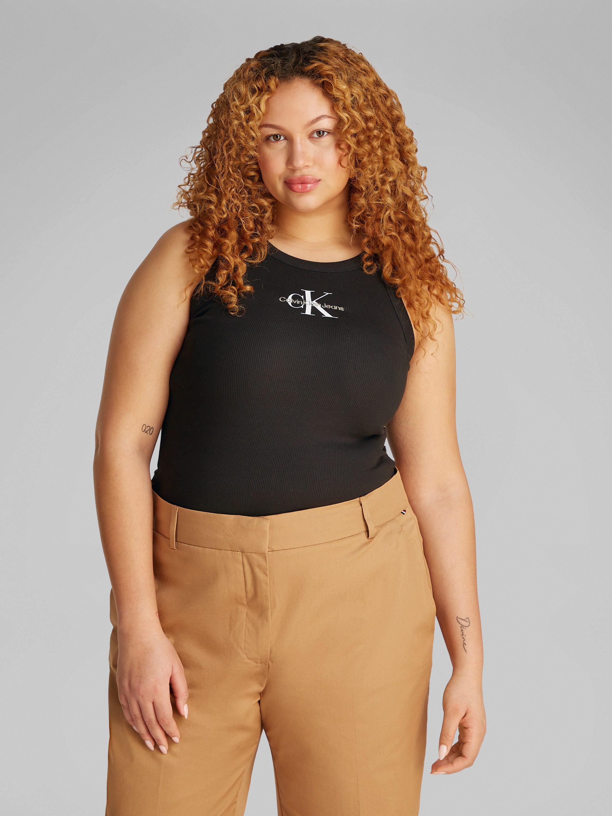 Drunter oder drüber — das Top »PLUS MONOLOGO RIB TANK TOP« von Calvin Klein Jeans Plus bietet dir verschiedene Tragevarianten und sollteund sollte für das richtige Styling nicht fehlen.