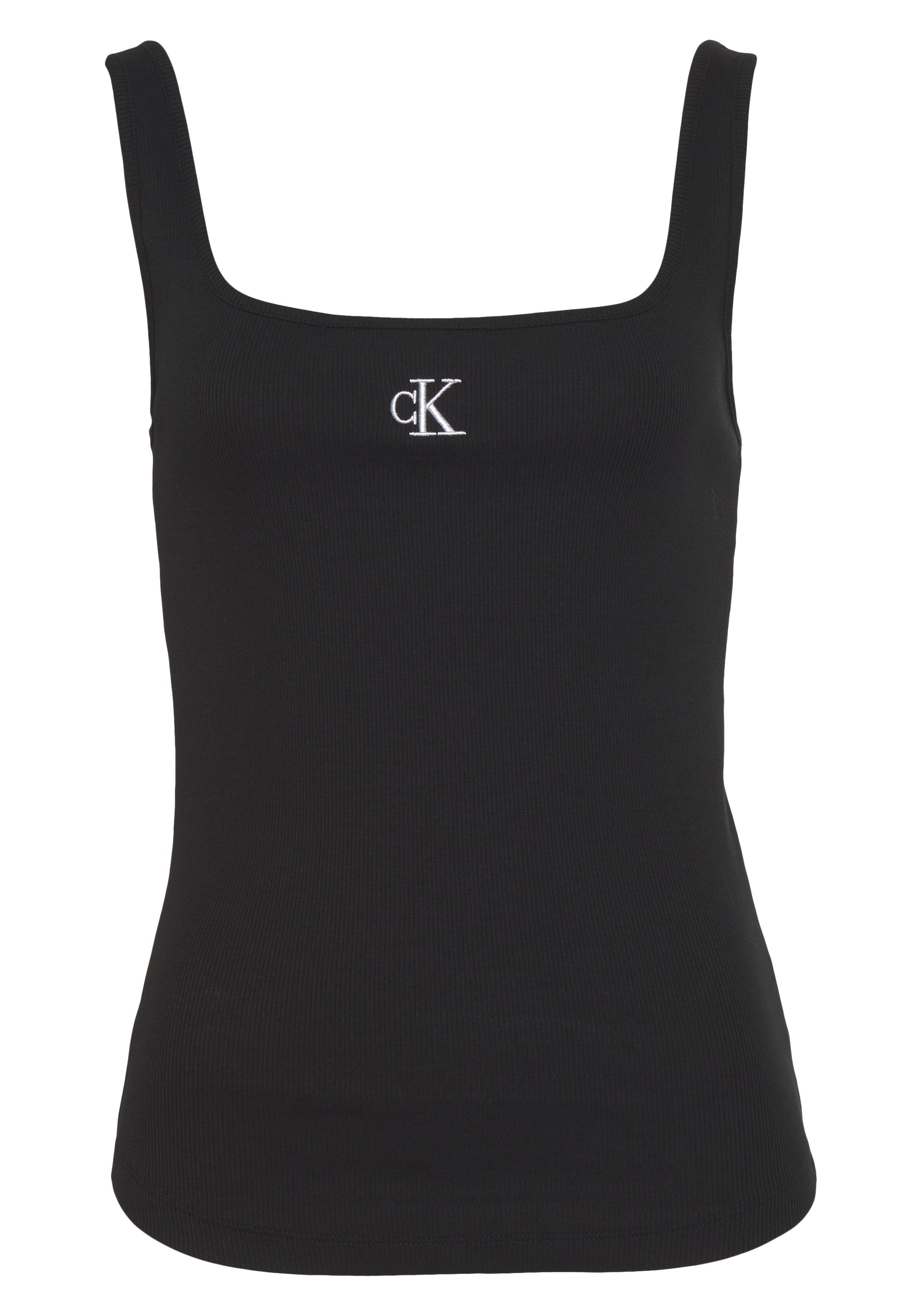 Gesucht und gefunden: Schau dir das Tanktop »CK RIB TANK TOP« von Calvin Klein Jeans mal genauer an. Individuell und trendy wird das Top durch den Logodruck. Dieses Top hat einen eckigen Ausschnitt und ist hüftlang sowie figurbetont geschnitten, sodass es deine Silhouette schön betont.