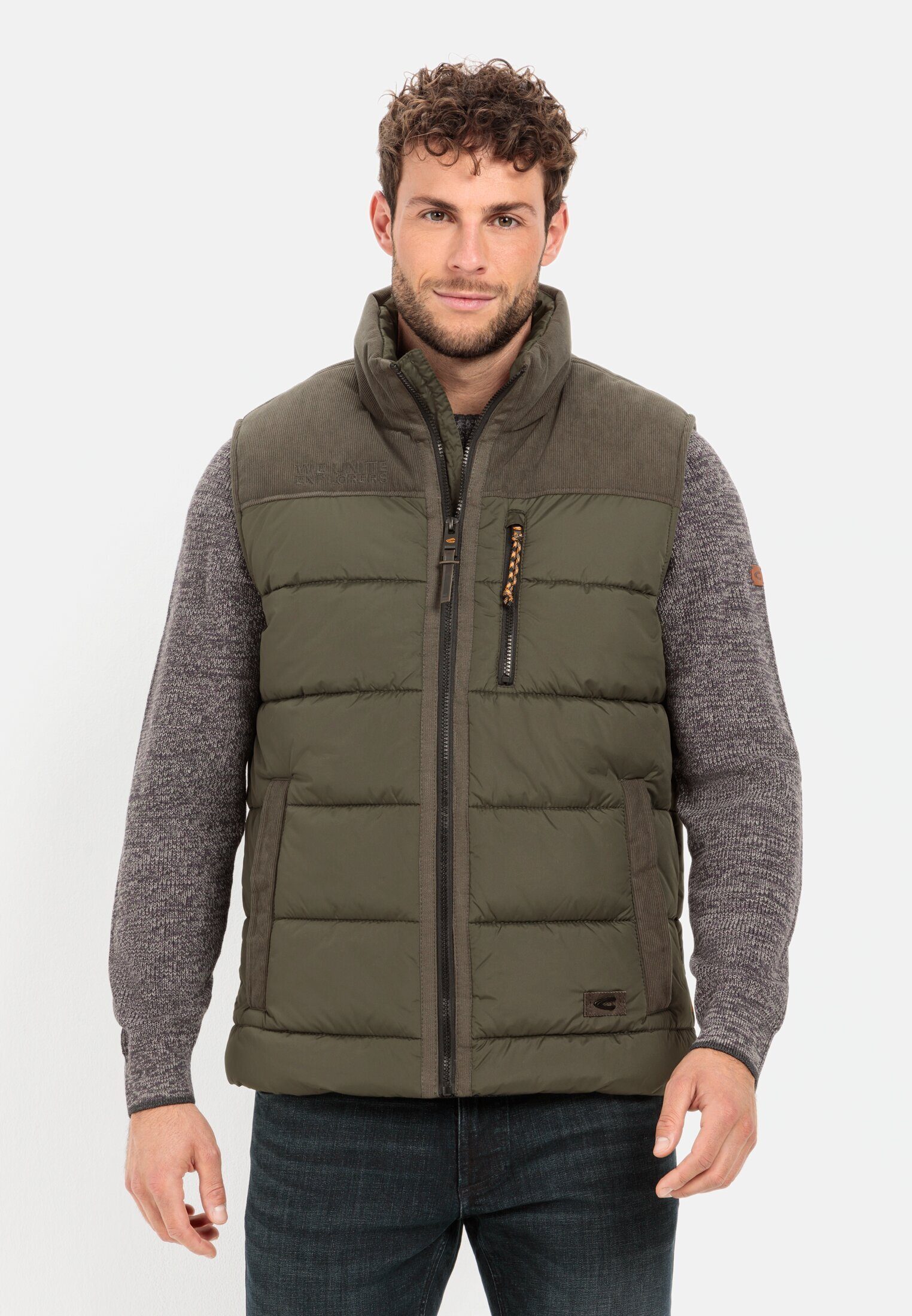camel active Funktionsweste mit Stehkragen und Cordbesatz ärmellos Stehkragen Weste_Outdoor-Weste