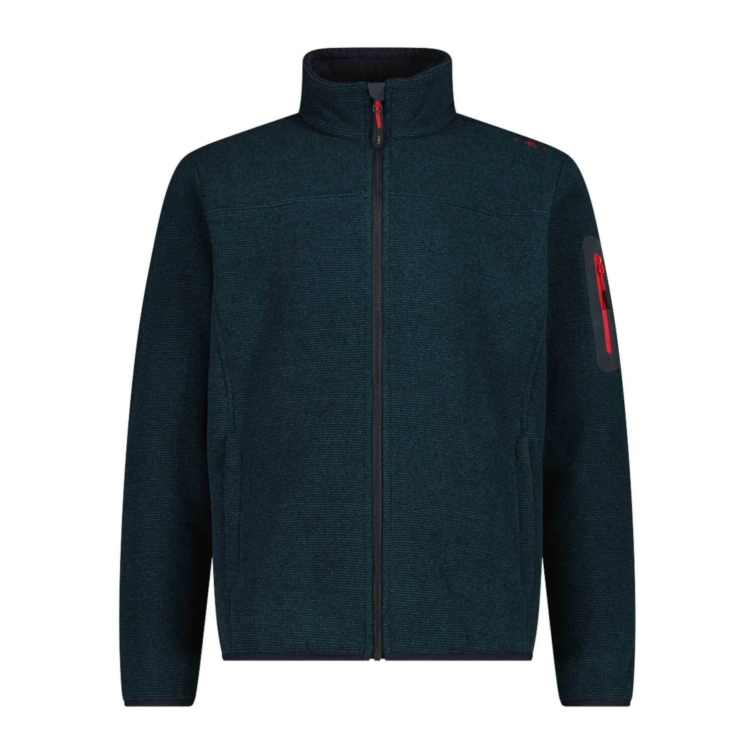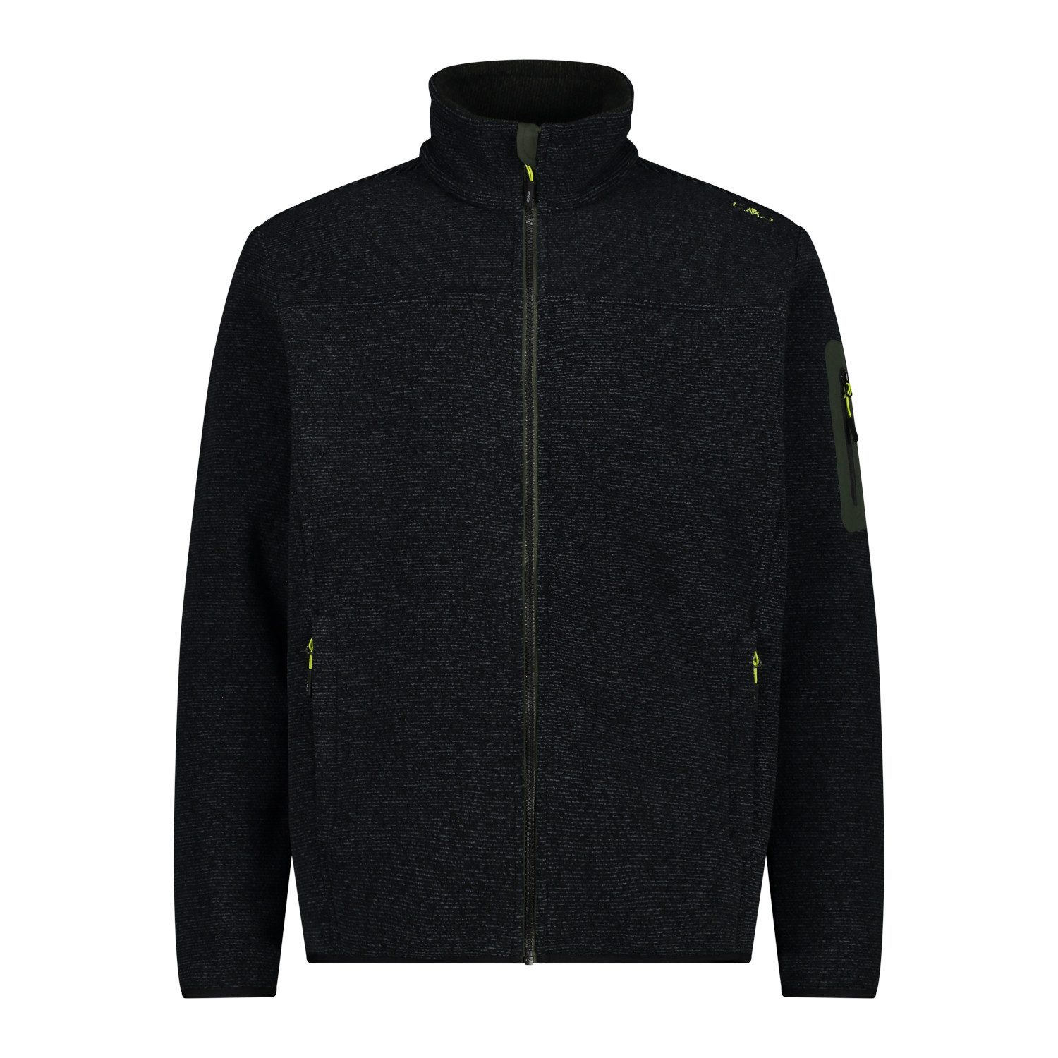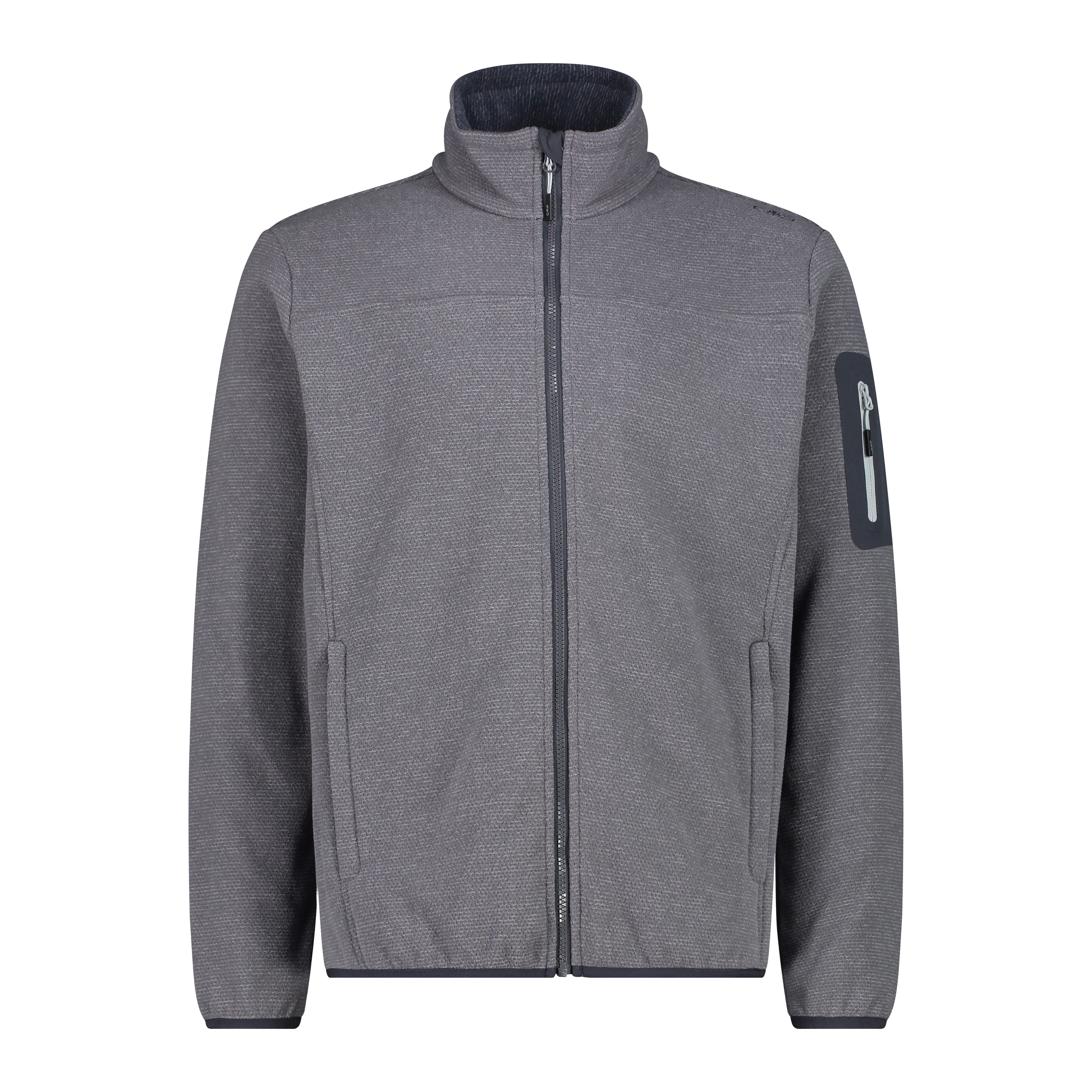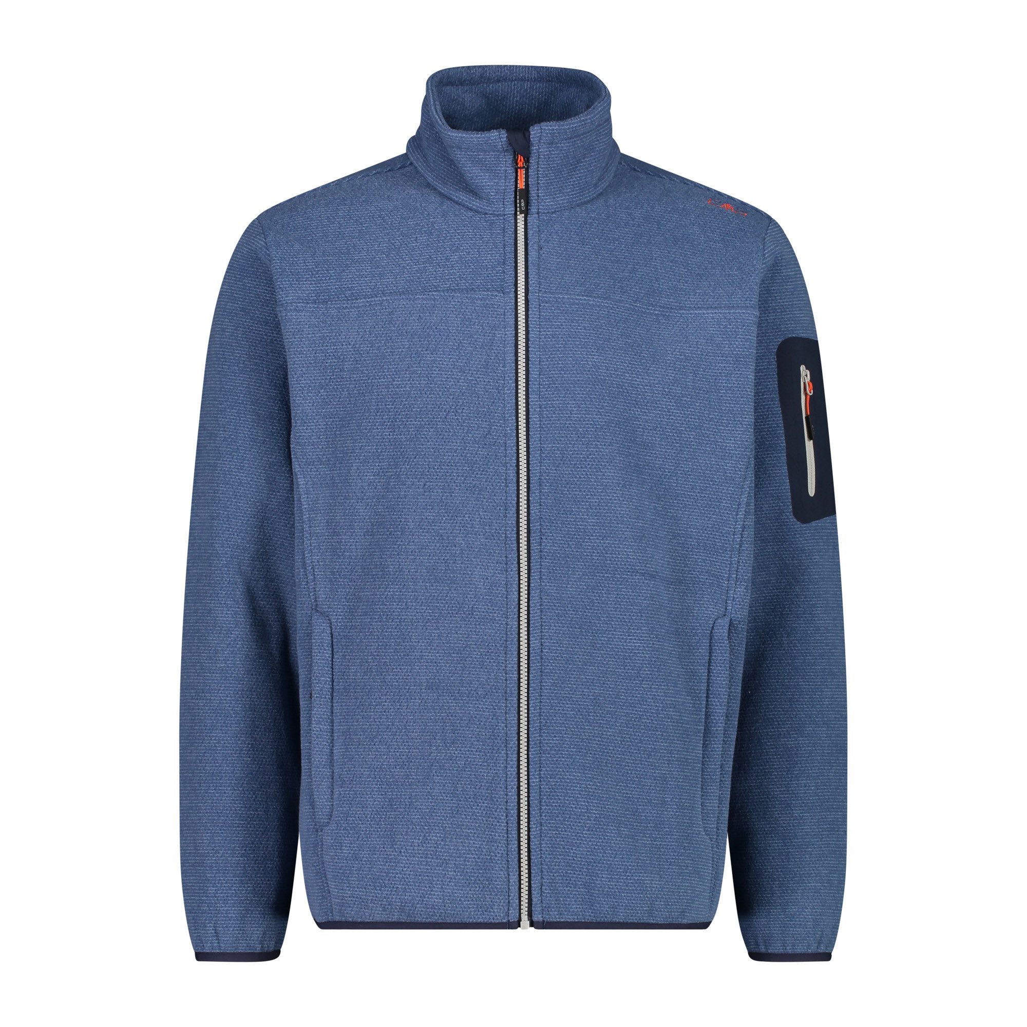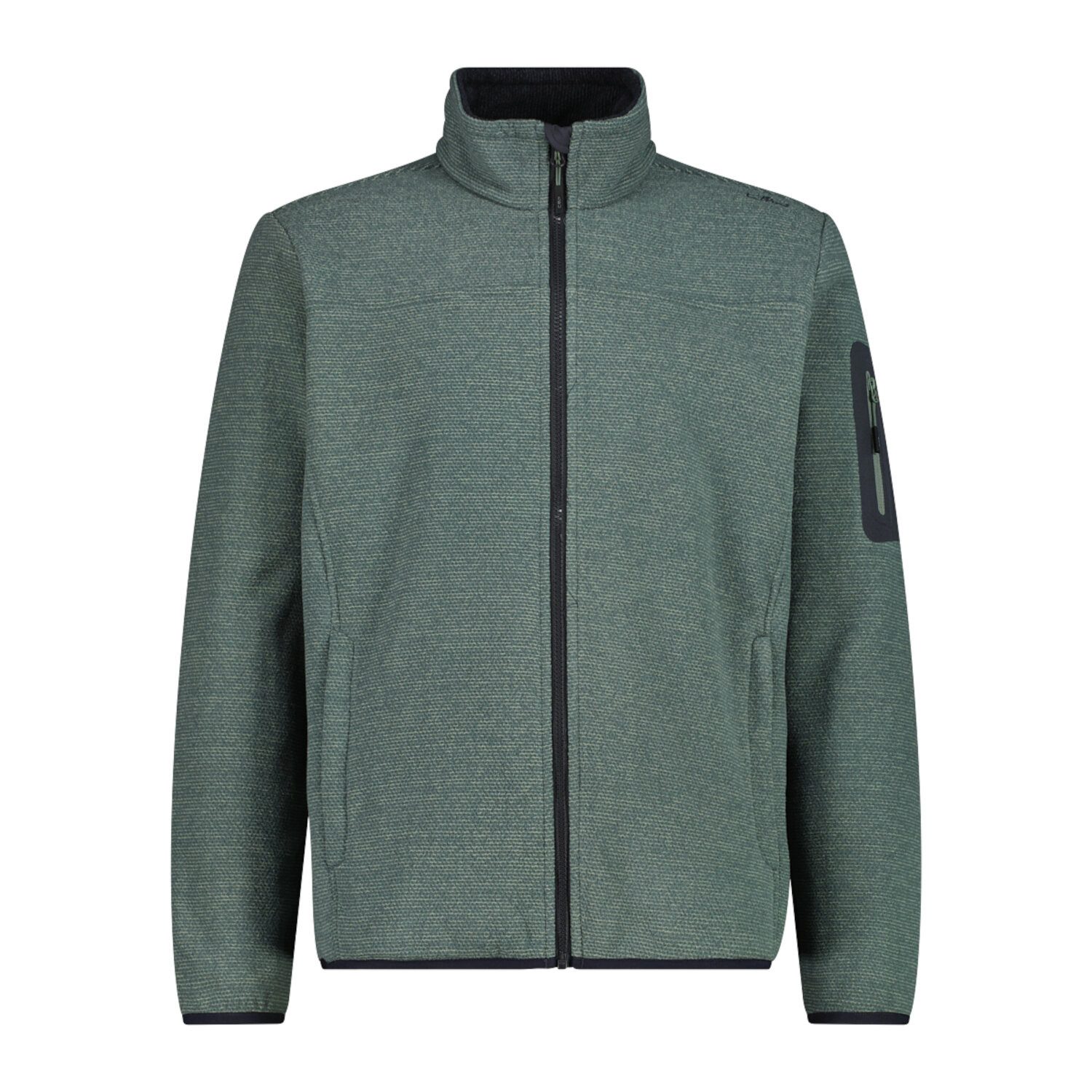 Ein technischer Look für diese CMP Jacke Man Jacket Knitted Jacquard aus Melangefleece, speziell für Outdooraktivitäten gedacht. Die Jacke besteht aus einem besonderen Stoffmix, der einen wollähnlichen Effekt erzeugt. Sie hat eine praktische Kapuze, zwei große Taschen und eine wärmeapplizierte Tasche auf dem linken Ärmel.