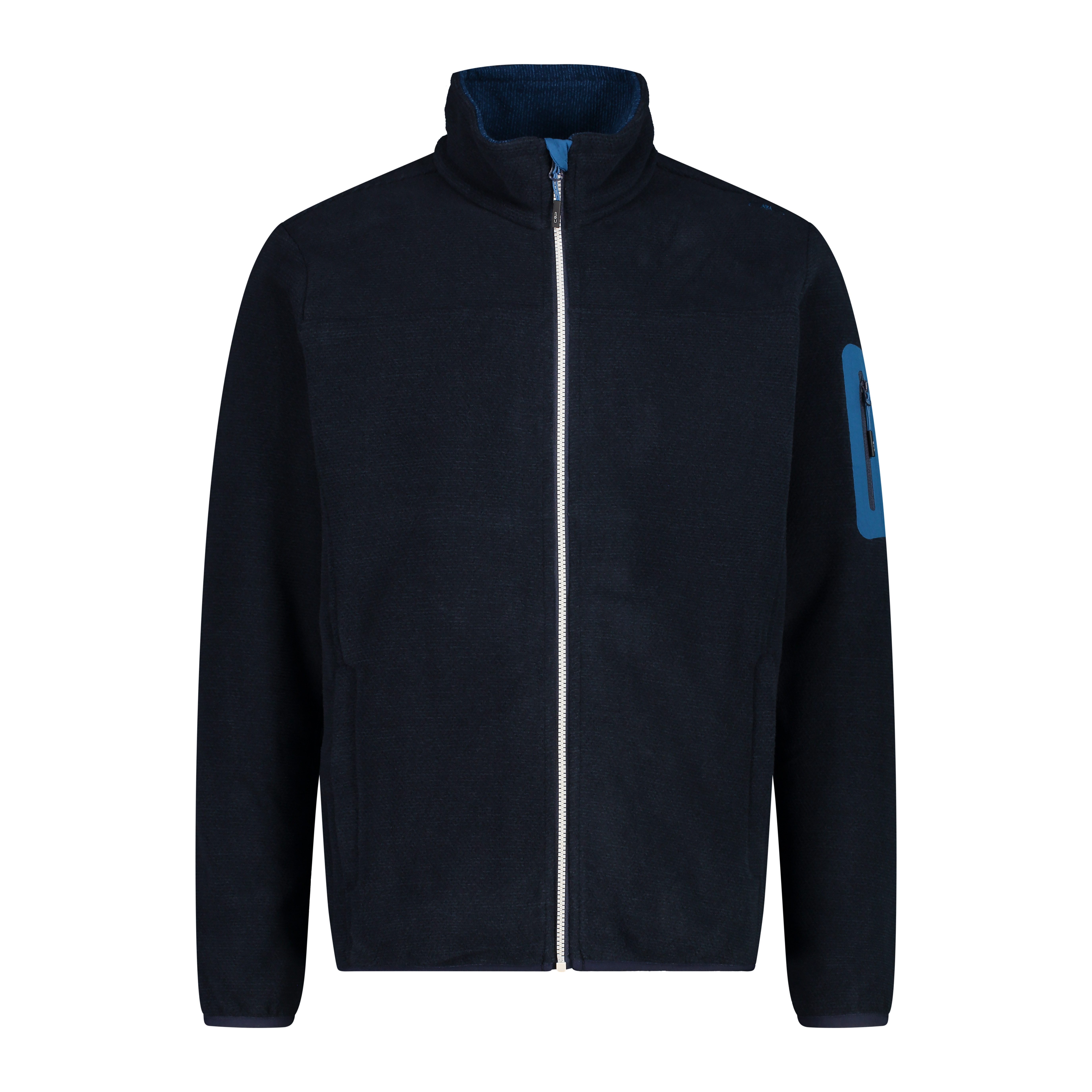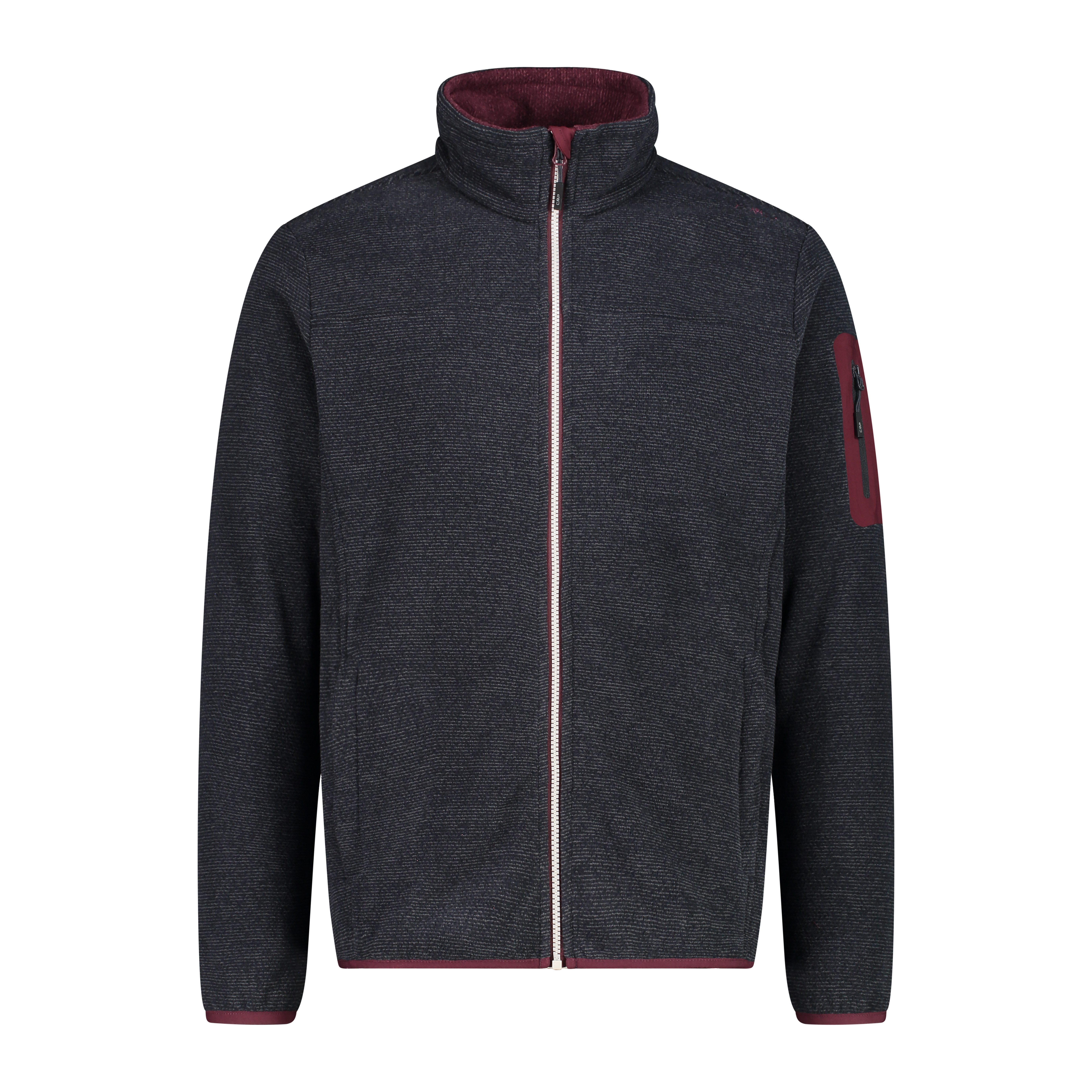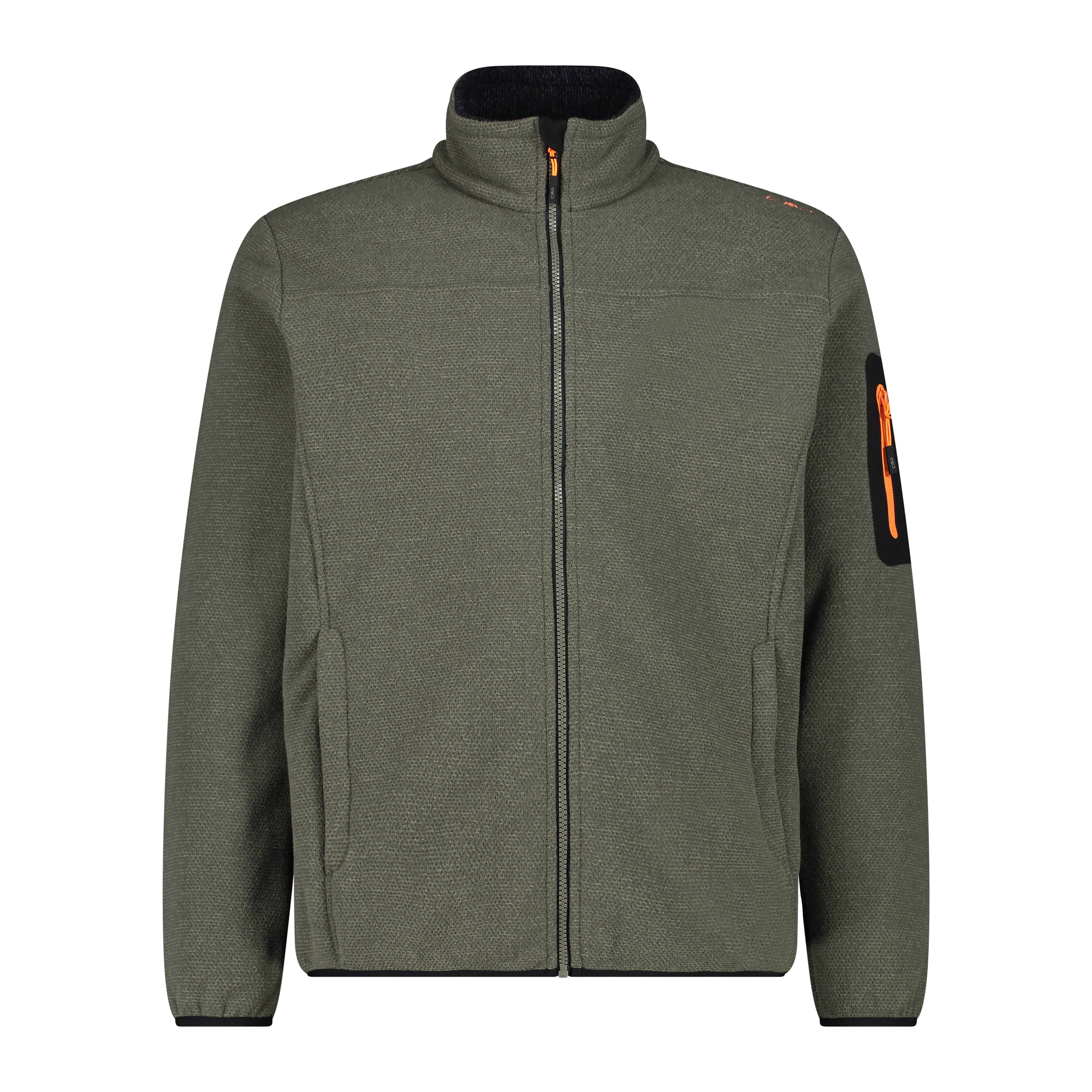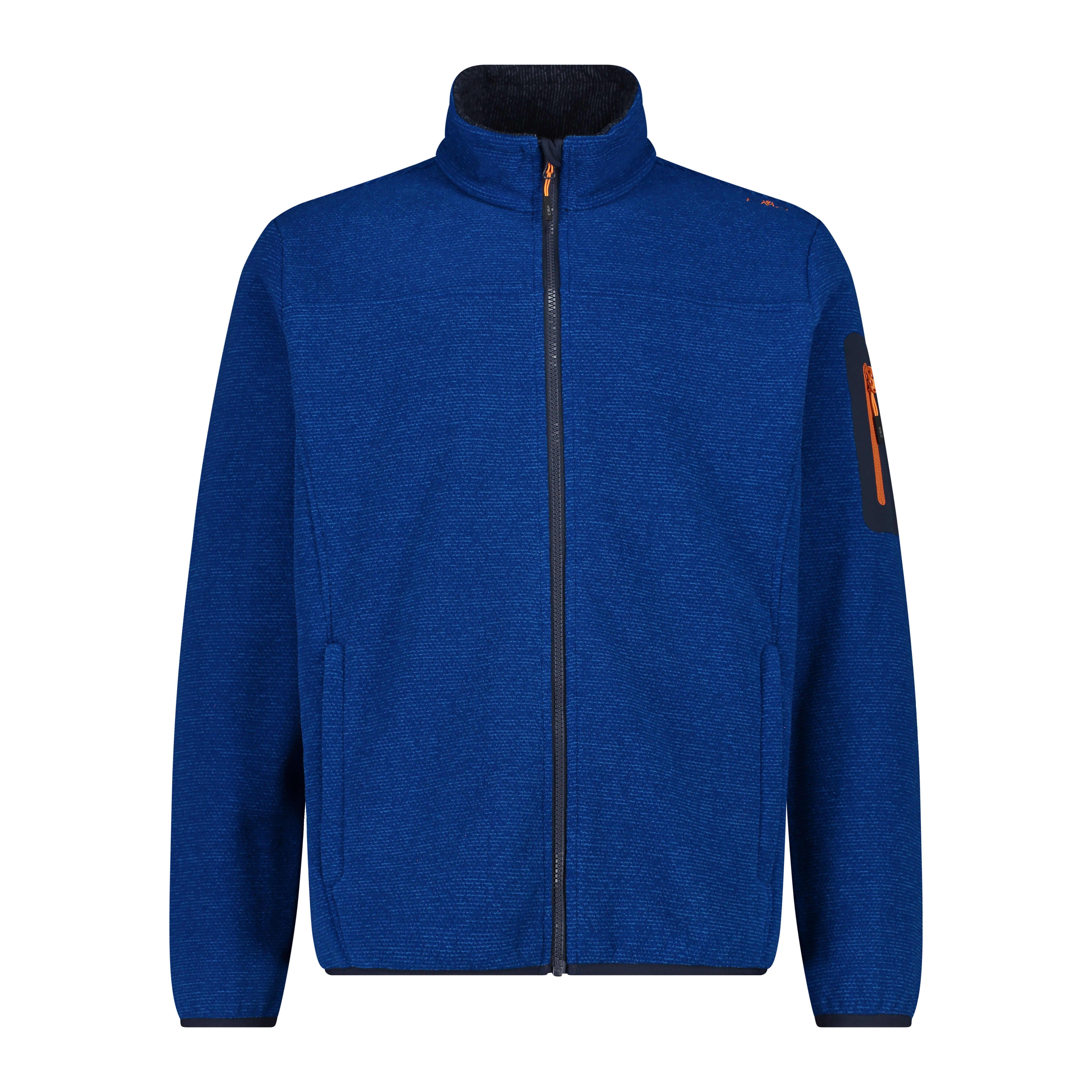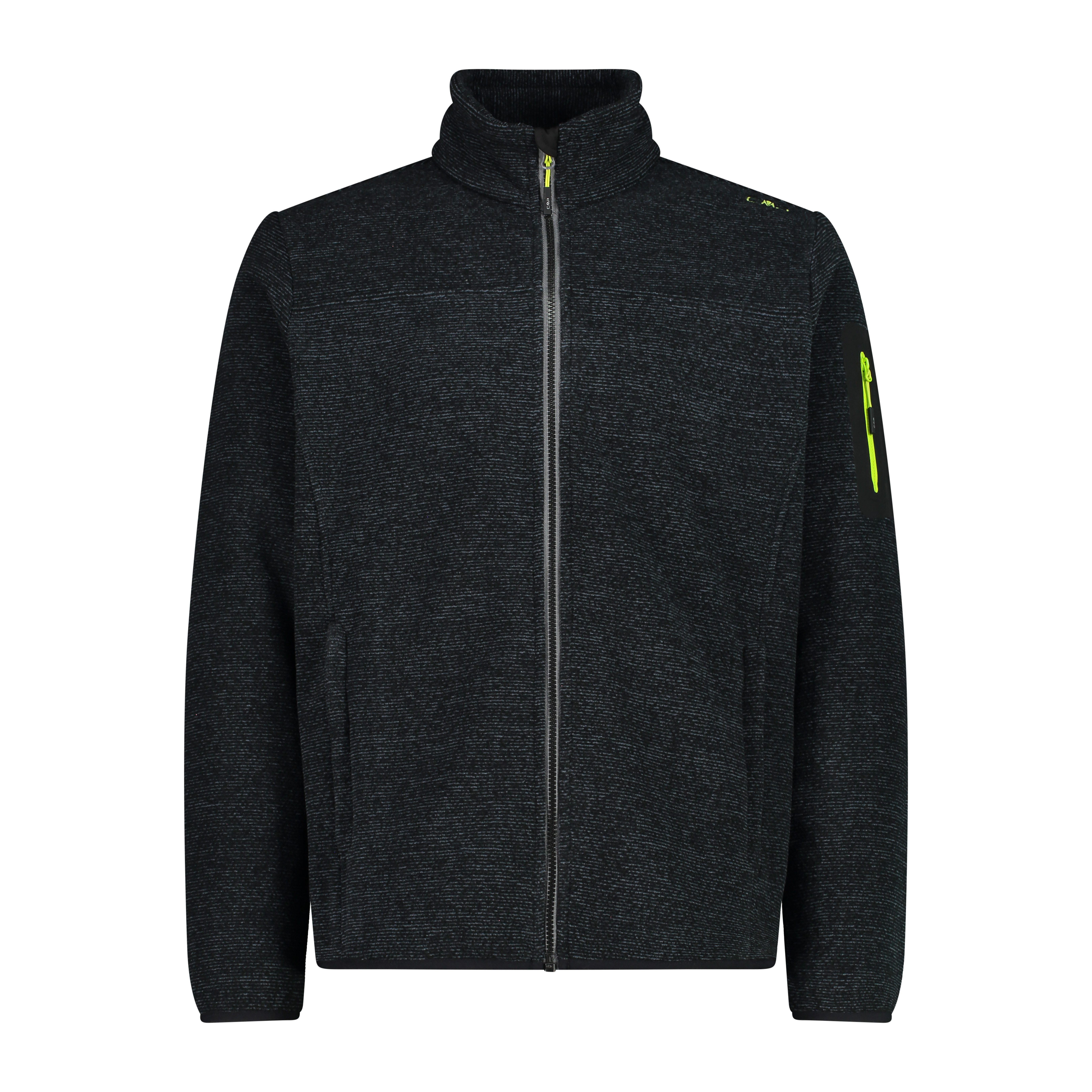 Ein technischer Look für diese CMP Jacke Man Jacket Knitted Jacquard aus Melangefleece, speziell für Outdooraktivitäten gedacht. Die Jacke besteht aus einem besonderen Stoffmix, der einen wollähnlichen Effekt erzeugt. Sie hat eine praktische Kapuze, zwei große Taschen und eine wärmeapplizierte Tasche auf dem linken Ärmel.