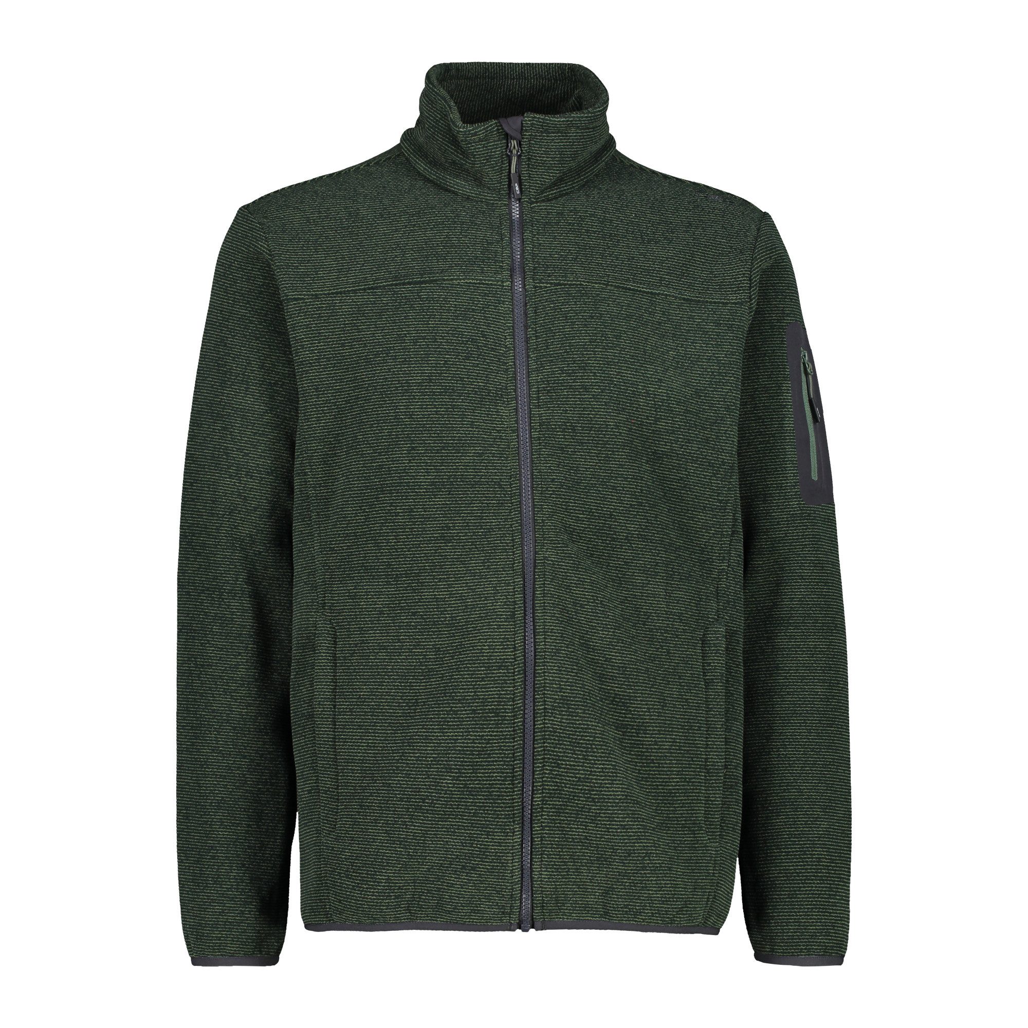 Hergestellt aus umweltfreundlichen Knit Tech von CMP - hält überaus warm und ist sehr bequem. Elastische Bundeinfassung am Saum und Armabschluss. Zwei Einschubtaschen und eine Armtasche mit Reißverschluss. In moderner Melange-Optik.