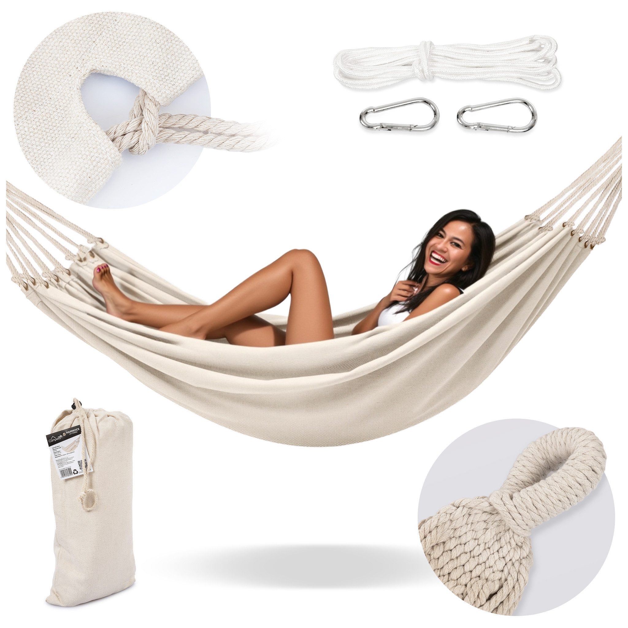 Die solide Verarbeitung, die große Liegefläche von 200 × 150 cm und die maximale Belastbarkeit von bis zu 240 kg garantieren einen sicheren und komfortablen Aufenthalt für zwei Personen. Im Set enthalten ist eine praktische Tragetasche, die den Transport und die Aufbewahrung erleichtert.