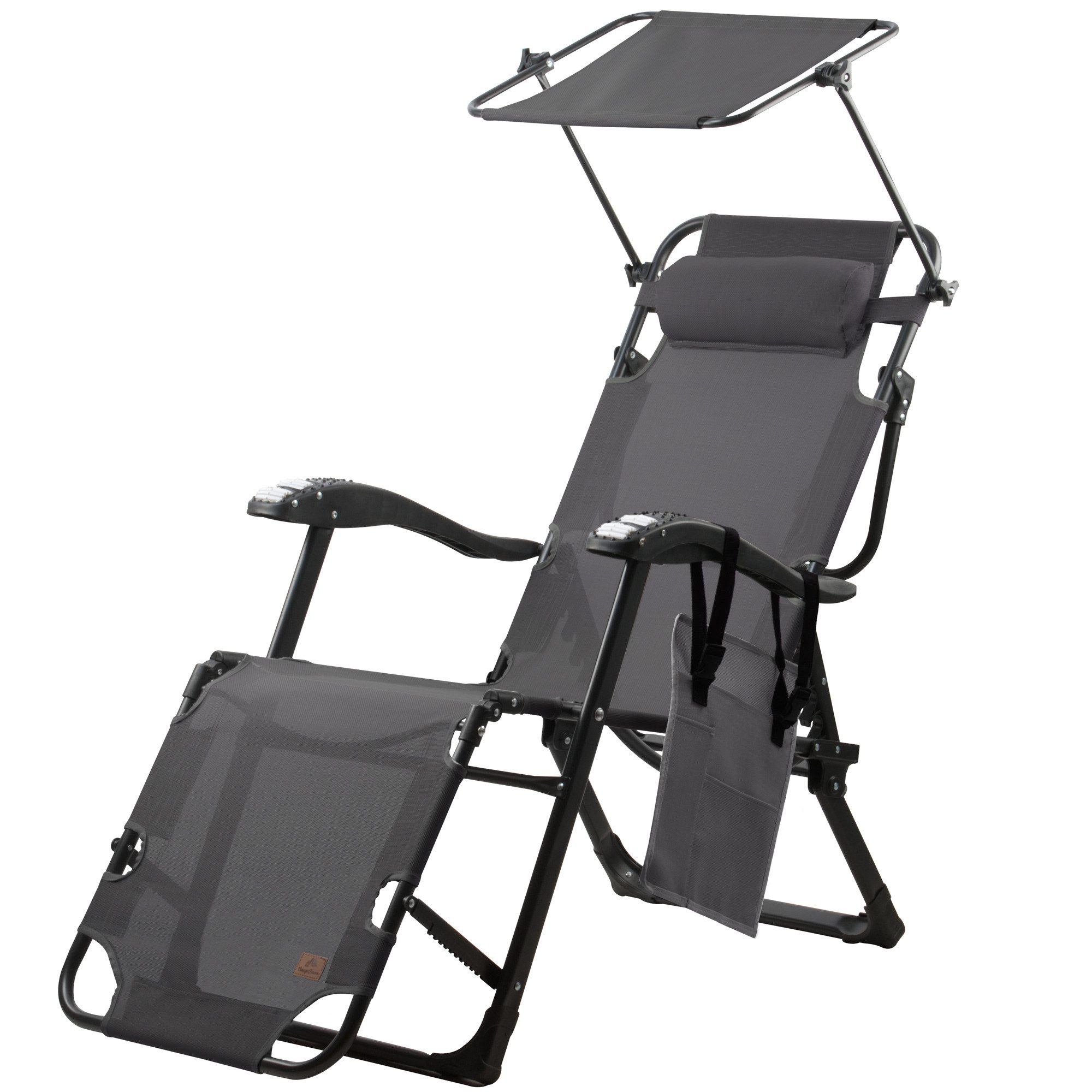 CampFeuer Sonnenliege mit Dach, Anthrazit, Campingliege mit Arm Massagerollen, Gartenliege