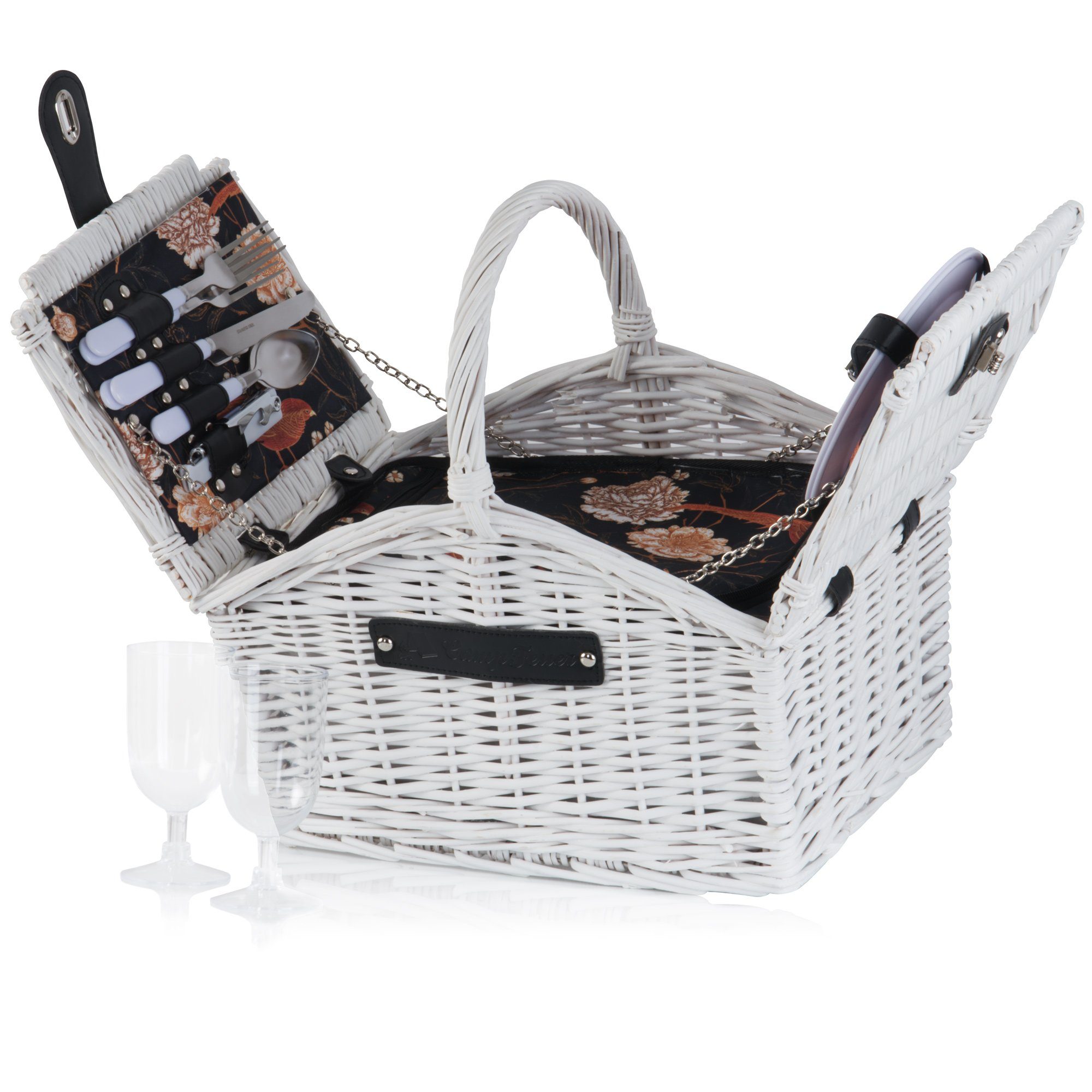CampFeuer Picknickkorb 2 Personen mit Kühlfach und Geschirr-Set, 12-teilig, Weiß, Weidenkorb